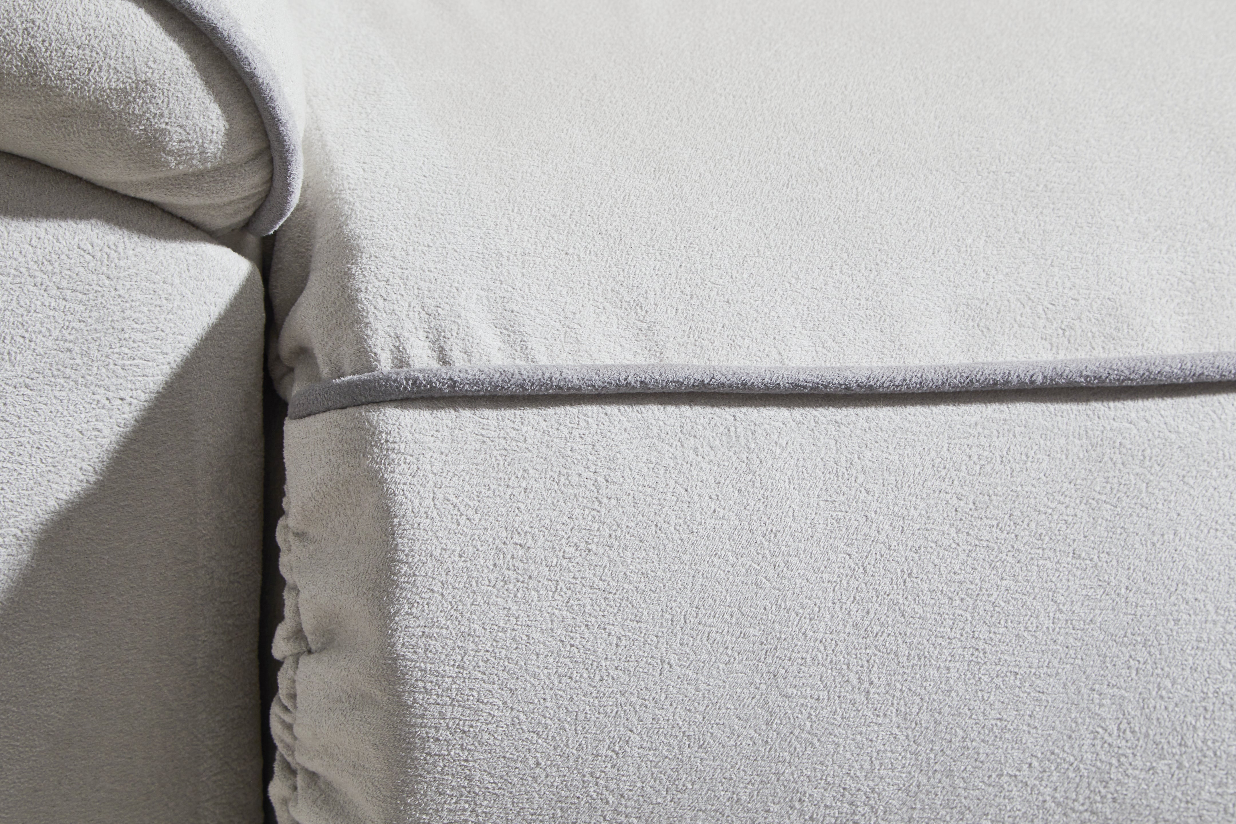 Smart, clean and ultra modern, this power reclining sectional is utterly in vogue. You'll love its indulgent cushions and contemporary bustle back styling. The sumptuous fabric, accentuated with contrasting welting, easily blends with your decor. A convenient console with storage and two cup holders keeps essentials handy. And with reclining at the press of a button, this modular sectional proves chic design and superb comfort go hand in hand.