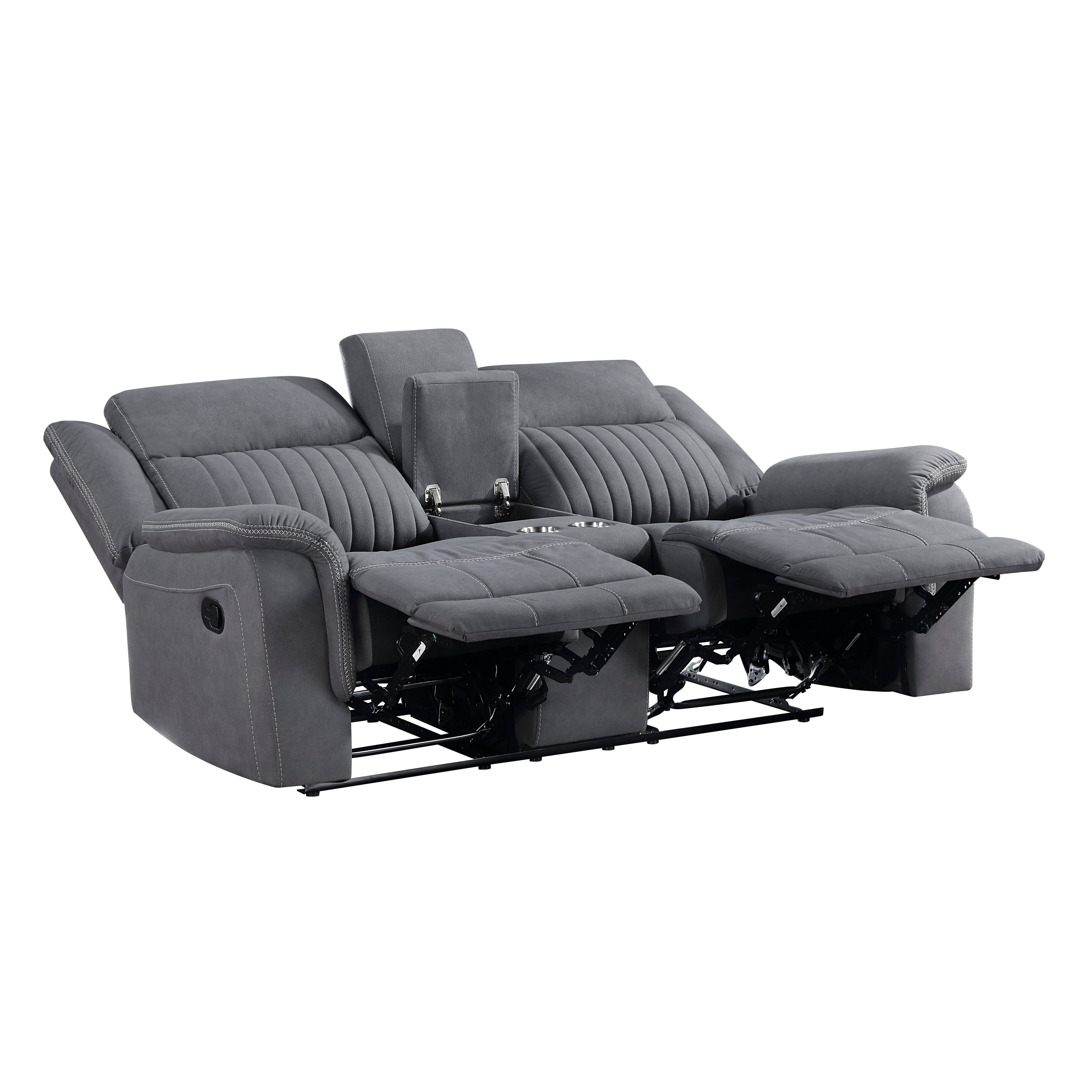 Convenience and comfort provide the basis of the design of the Dean Collection while the unfettered lines of modern design lend a casual air to the seating group’s profile. The love seat features dual reclining ends and has a console with cup holders and hidden storage space. Manual motion mechanisms allow for your reclined experience and are engaged with a pull of the side mounted tab. Gray polished microfiber presents as a neutral palette for your home’s subtle modern style.