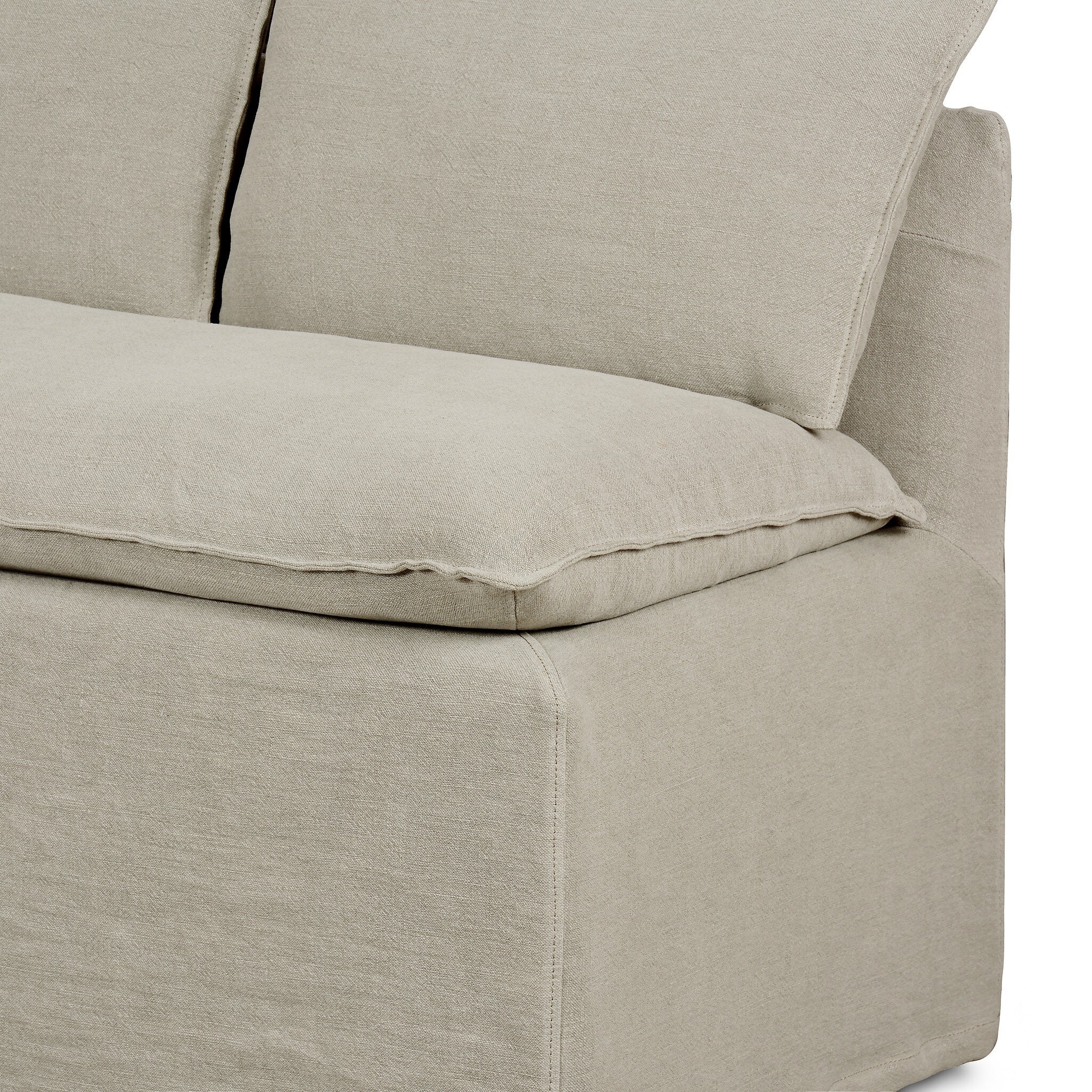 - A slipcovered modular banquette offers a clean, contemporary feel with casual flexibility. Feather-blend cushioning for sink-in comfort, plus flanged top seams for a tailored look. Fully removable slipcover is handcrafted from 100% flax/linen, bringing a loose, relaxed look to the entire piece.