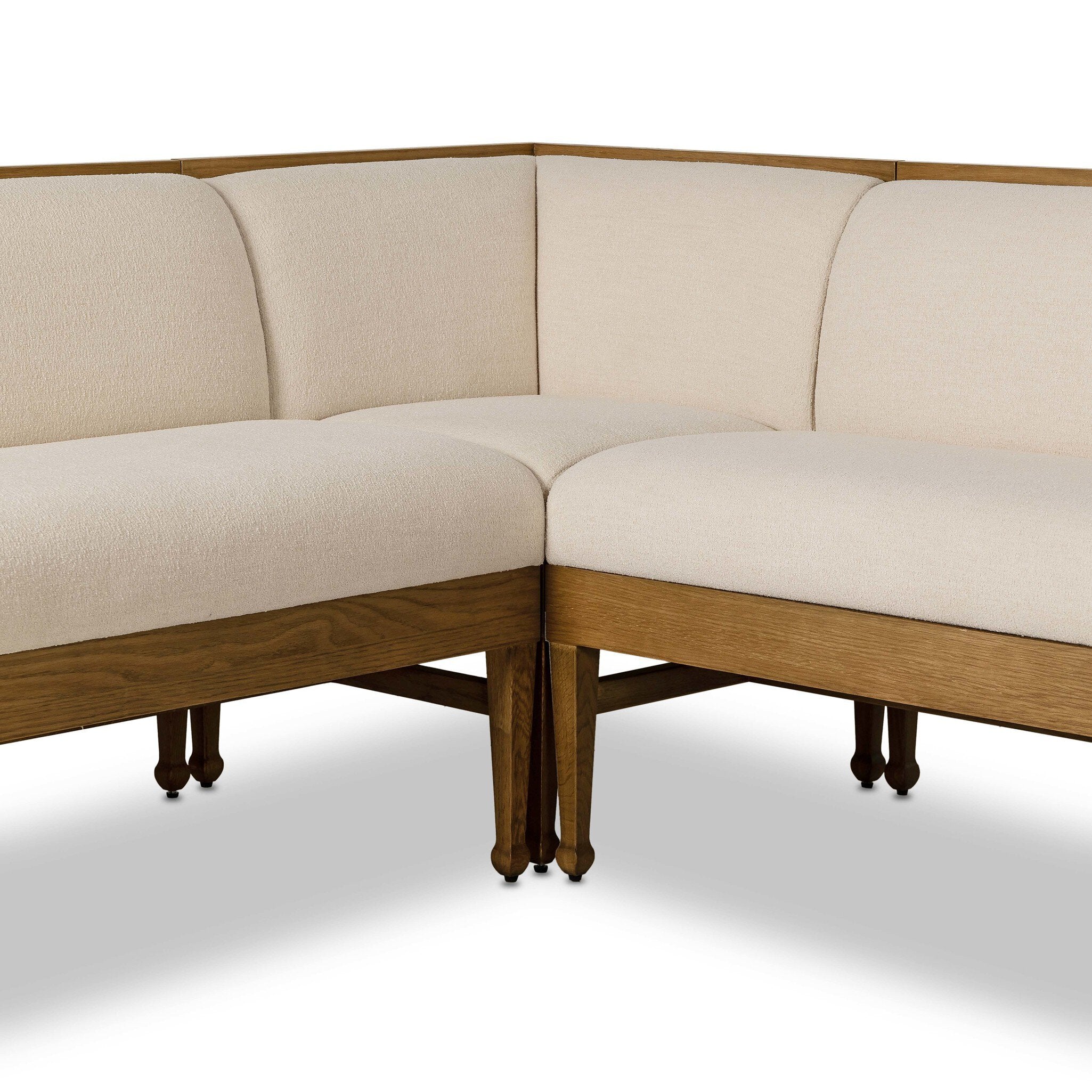 - Create your own corner for dining and conversation with this smaller-scale modular banquette, crafted from warm oak. Thick cushioning supports the seat and back, upholstered in snow-white Crypton® performance fabric. Crypton® performance fabric is specially engineered for protection against stains, moisture and odor. Tall, tapered square legs have bun feet for a traditional finish.