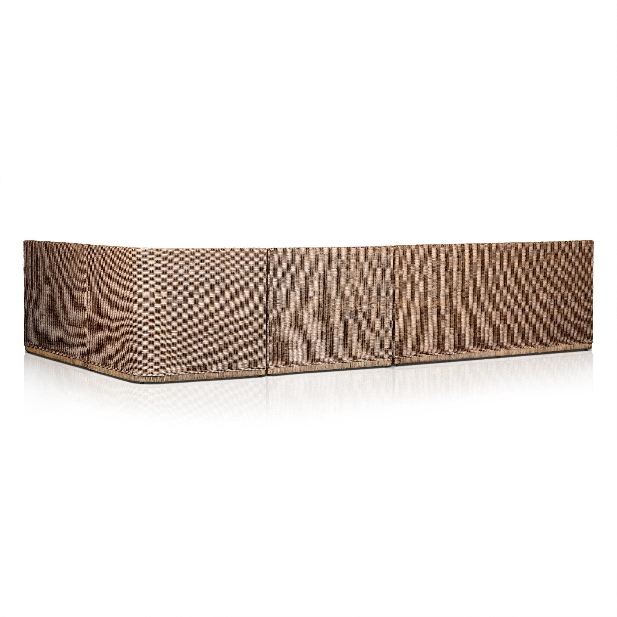 Antique-inspired coastal style. Rattan introduces varying natural shades and texture to this dining bench, and the frame's soft lines and fabric cushion invite a comfortable sit. Option to style alone or pair with other pieces in the collection. A design collaboration by Amber Lewis and Four Hands. This item has limited online distribution and may not be sold on websites without prior approval. Visit the FAQ page in our Help Center for more details. — Luna Furniture introduces Senna Dining Banquette L-Shape in Broadway Dune to enhance the beauty of your living spaces.