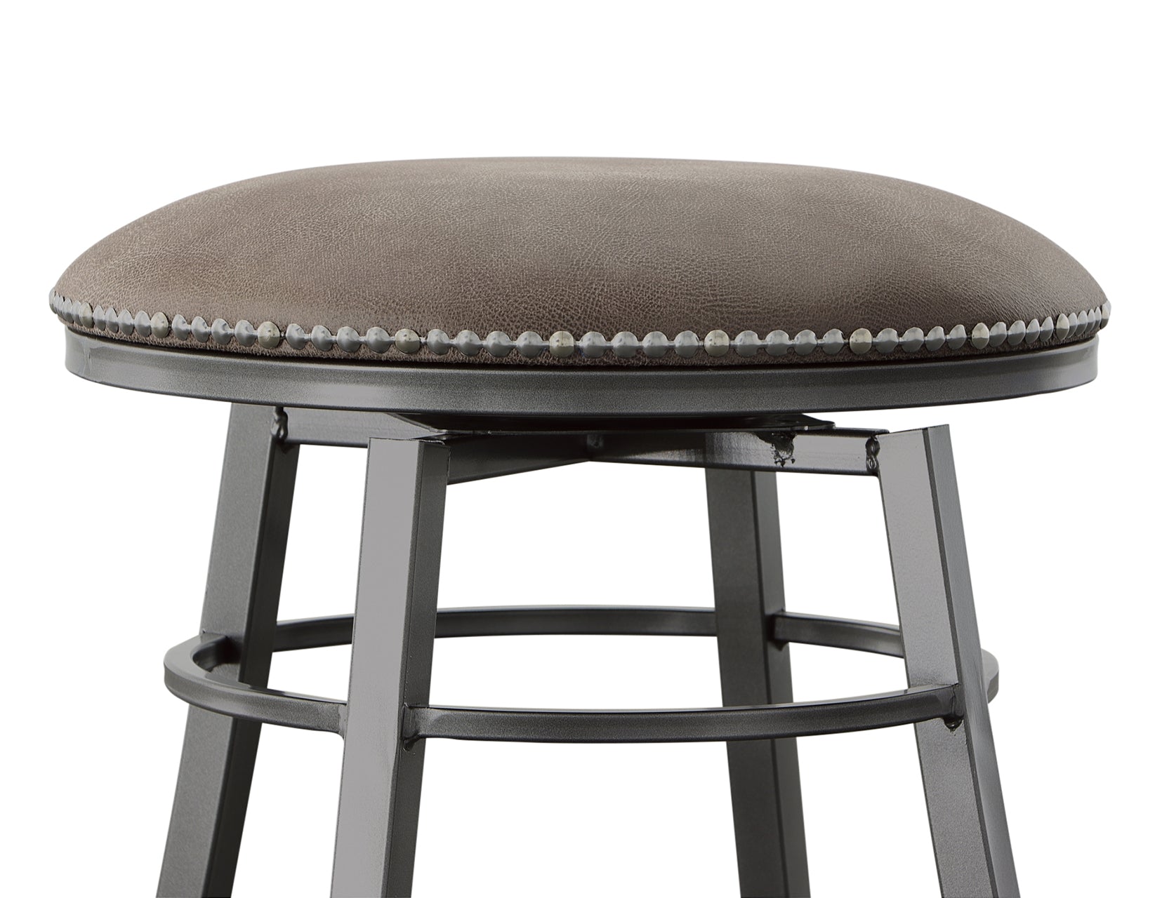 Enjoy casual comfort with the Steve Silver Bali Backless Swivel Bar and Counter Stools. Upholstered in brown bonded leather, the seats are padded for comfort and studded with nail head trim for a rugged, relaxed look. A great option for bar or brunch area.