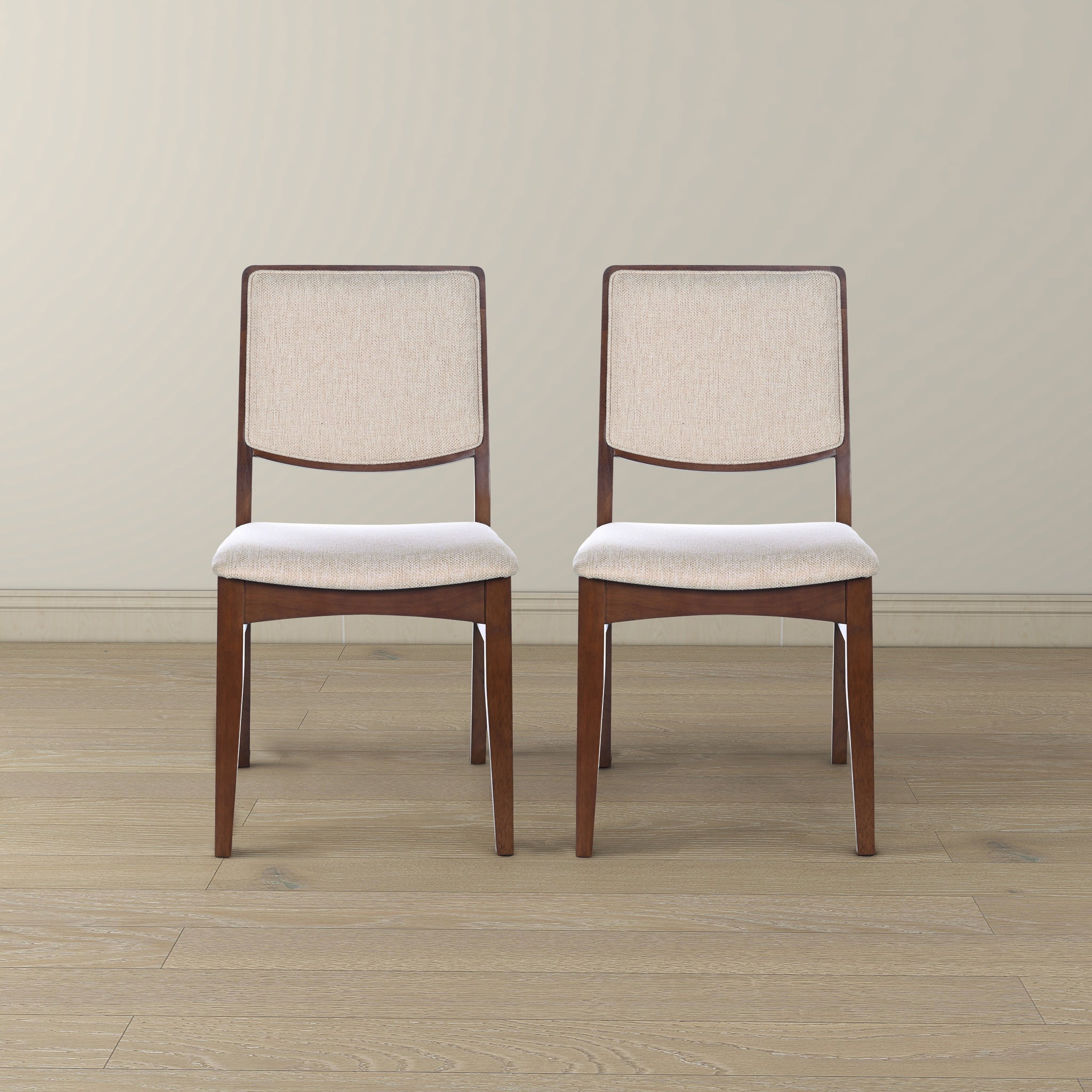 Any area gains a contemporary edge with the Skylar mid-century dining chair. It comes in a variety of chic performance fabrics and has a slightly pitched back and gently curved seat, making it comfortable for talks as well as meals. The elegant form and robust wood frame evoke traditional mid-century shapes.
