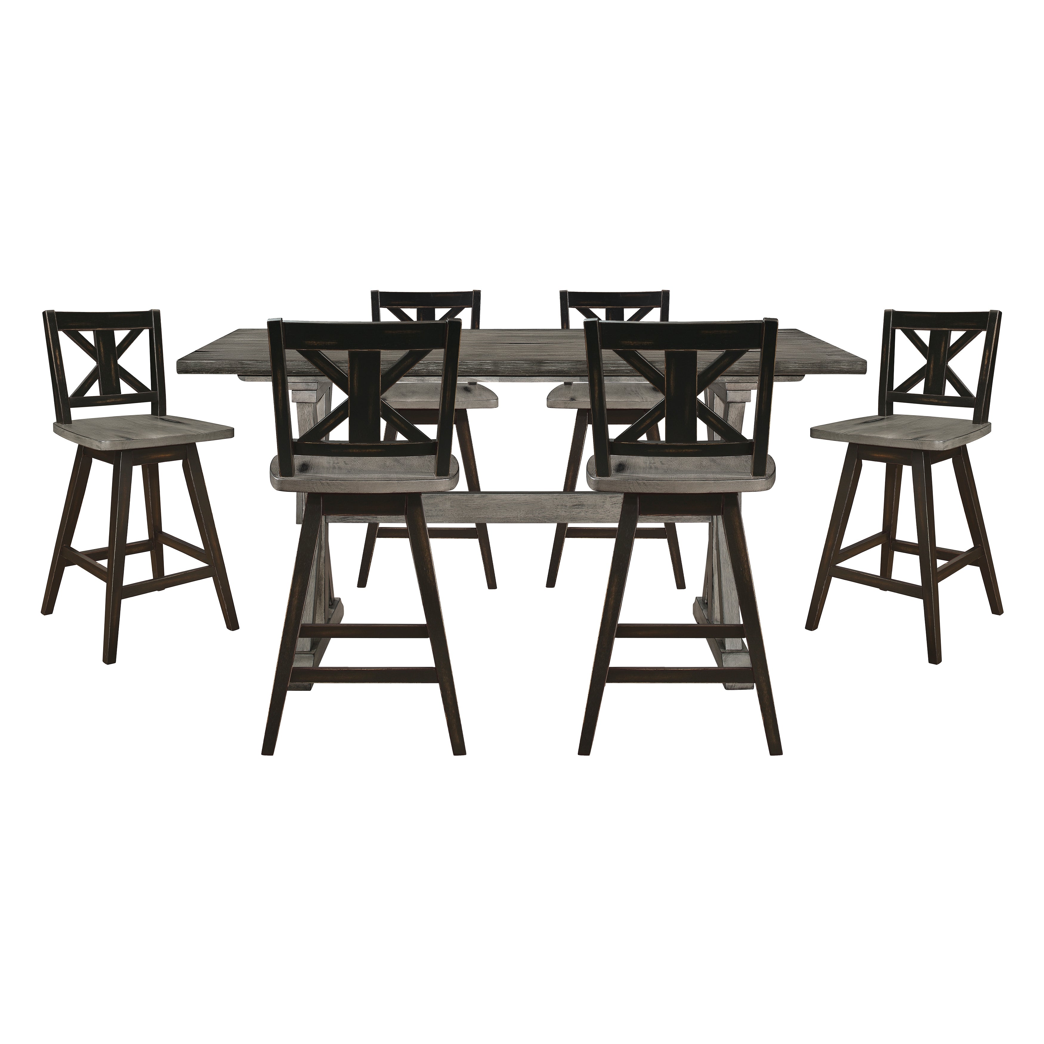 Amsonia Gray/Black 7-Piece Counter Height Set with X-Back Swivel Chairs