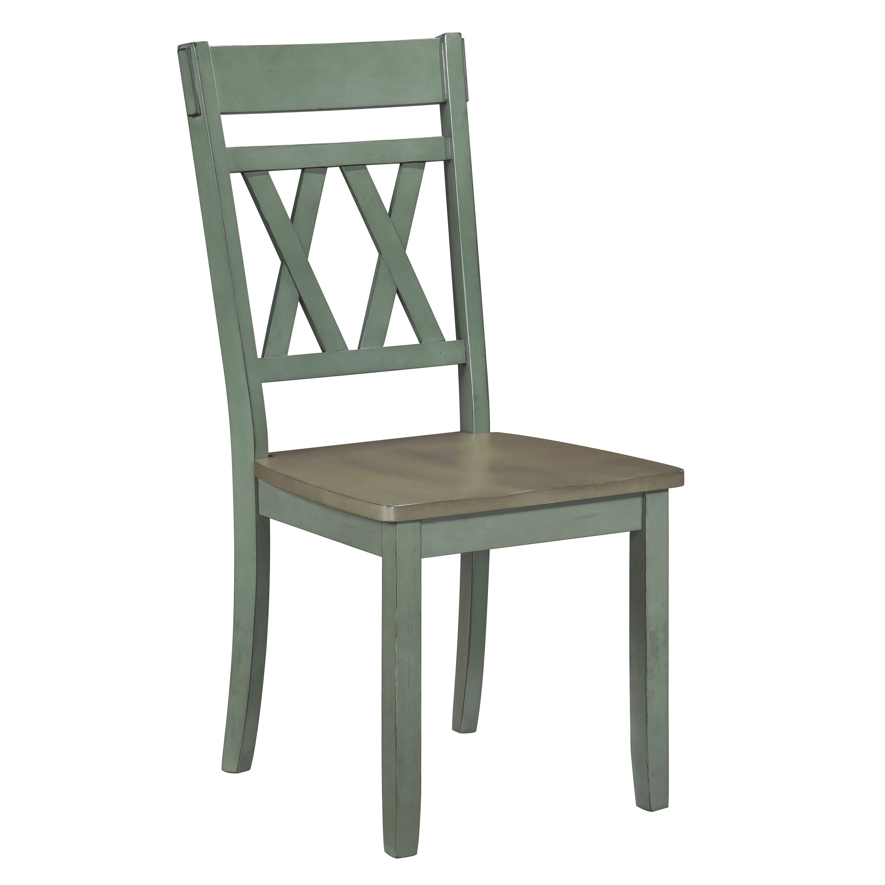 Elevate your dining space with this stylish two-tone round dining set, blending rustic charm with modern farmhouse elegance. Featuring a durable Mindy veneer tabletop in a chic greywash finish and solid wood legs in classic antique white, this compact round table comfortably seats four—perfect for cozy dining rooms, breakfast nooks, and small kitchen spaces. Pair it with our matching X-back dining chairs, all finished in teal with a greywash seat for a coordinated look. Each chair offers lasting comfort and sturdy support. This farmhouse-modern dining collection delivers timeless style, everyday durability, and a warm, welcoming atmosphere to your home.