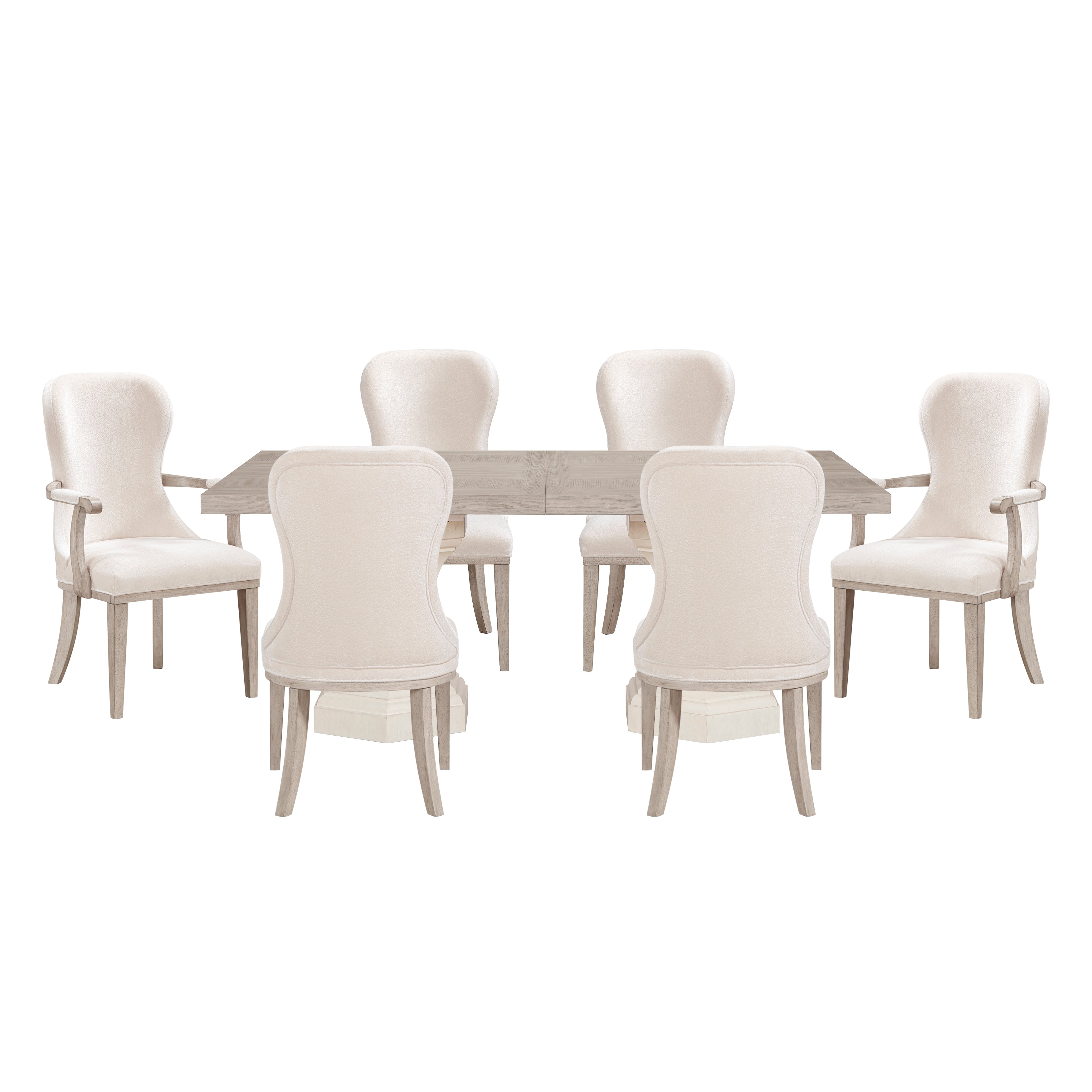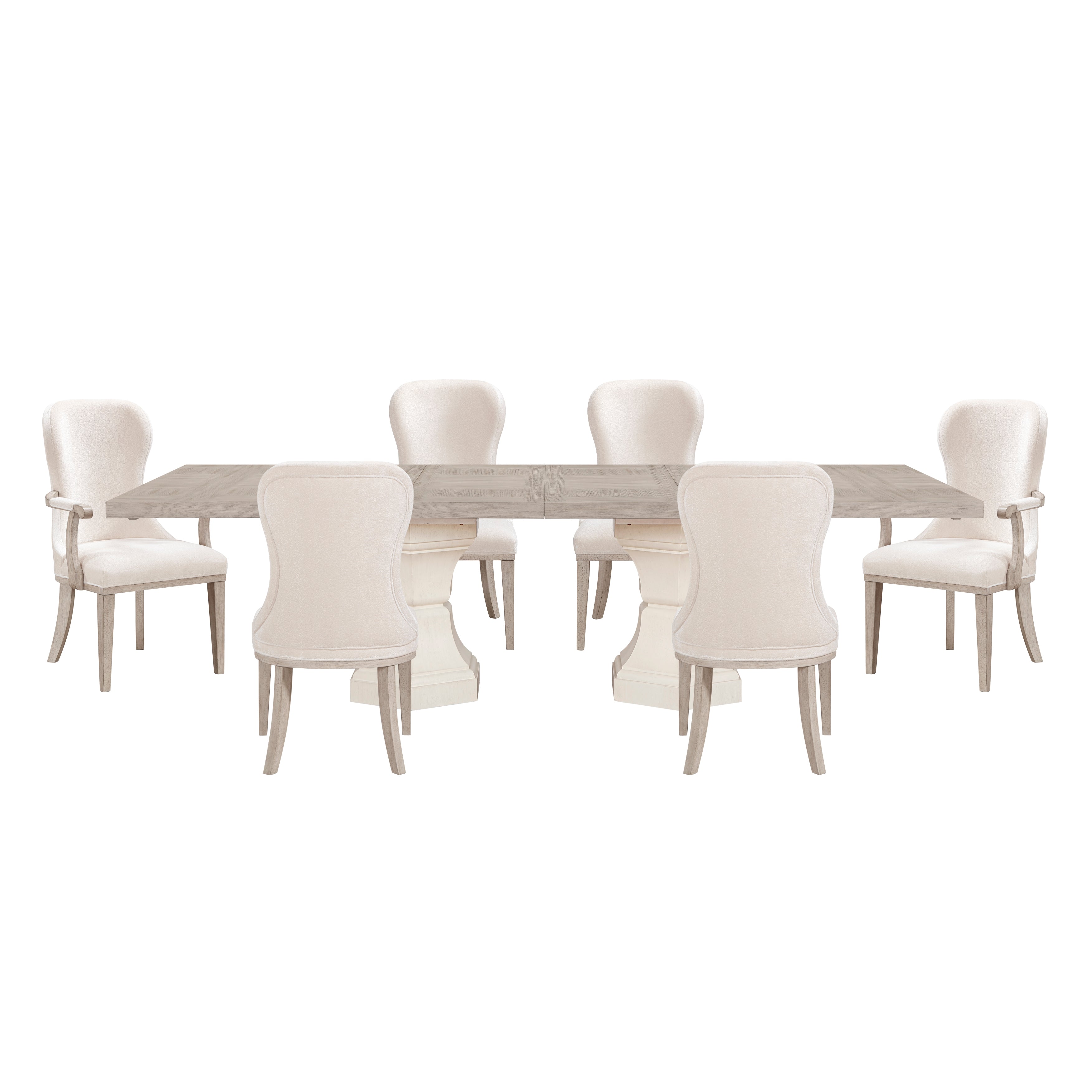 Lofton Light Gray/Ivory 7-Piece 108" Double Pedestal Extendable Dining Set