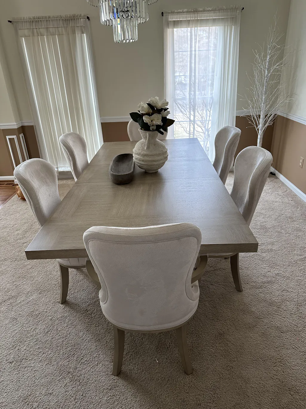 Lofton Light Gray/Ivory 108" Double Pedestal Extendable Dining Set