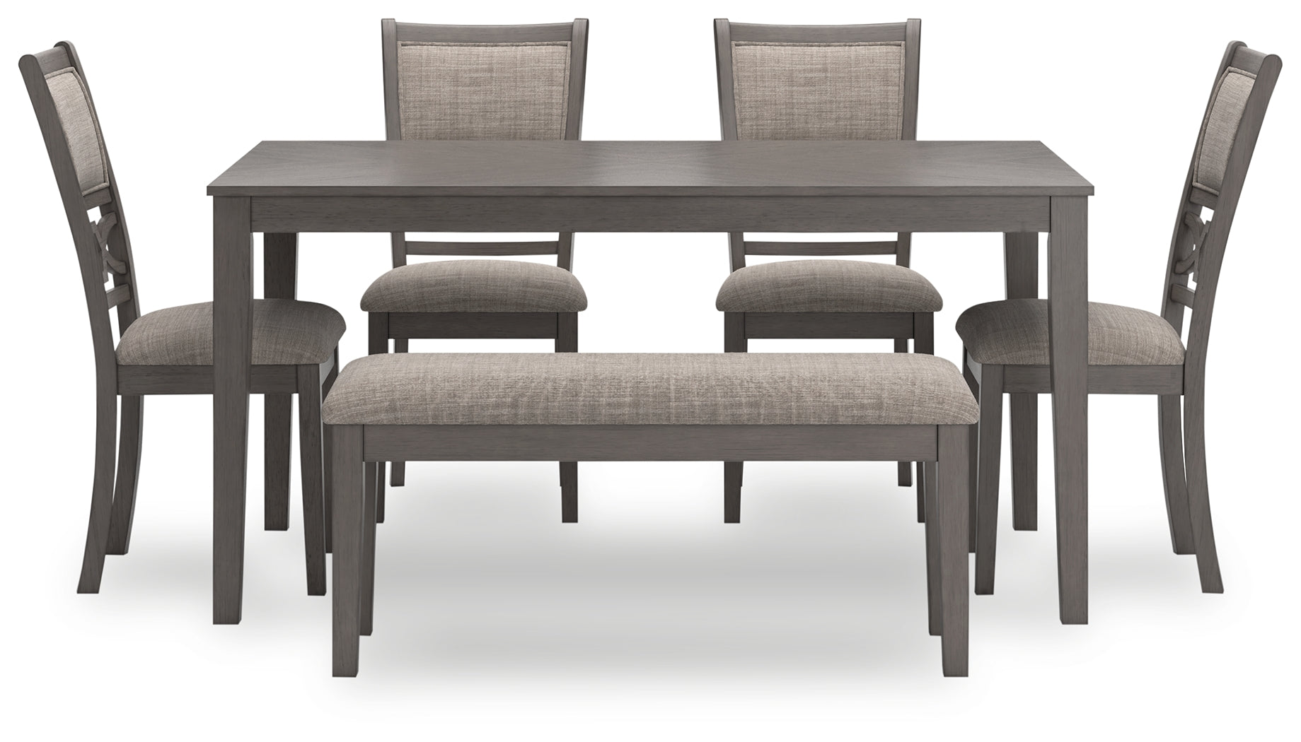 Wrenning Gray Dining Table and 4 Chairs and Bench (Set of 6)