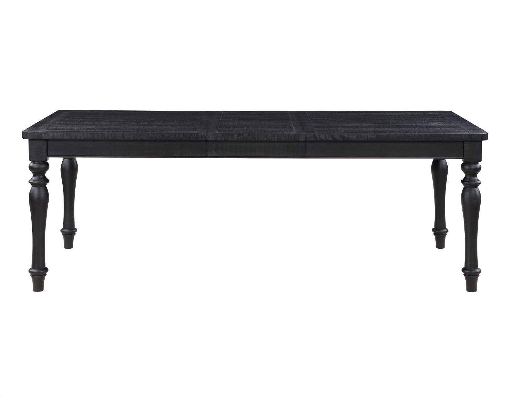 Casual farmhouse-inspired design is given a modern interpretation in the Odessa 66-84-inch Dining Table. Crafted from pine veneers and Asian hardwoods, the table is finished in a lustrous multi-step black stain over weighty turned legs that create a casual yet elegant centerpiece for any dining room. Wood scoring and saw rasping enhance Odessa’s rustic charm to create a vintage-inspired look. With the included 18-inch leaf, the Odessa Dining Table expands from 66 inches to 84 inches, accommodating up to 8 guests easily.