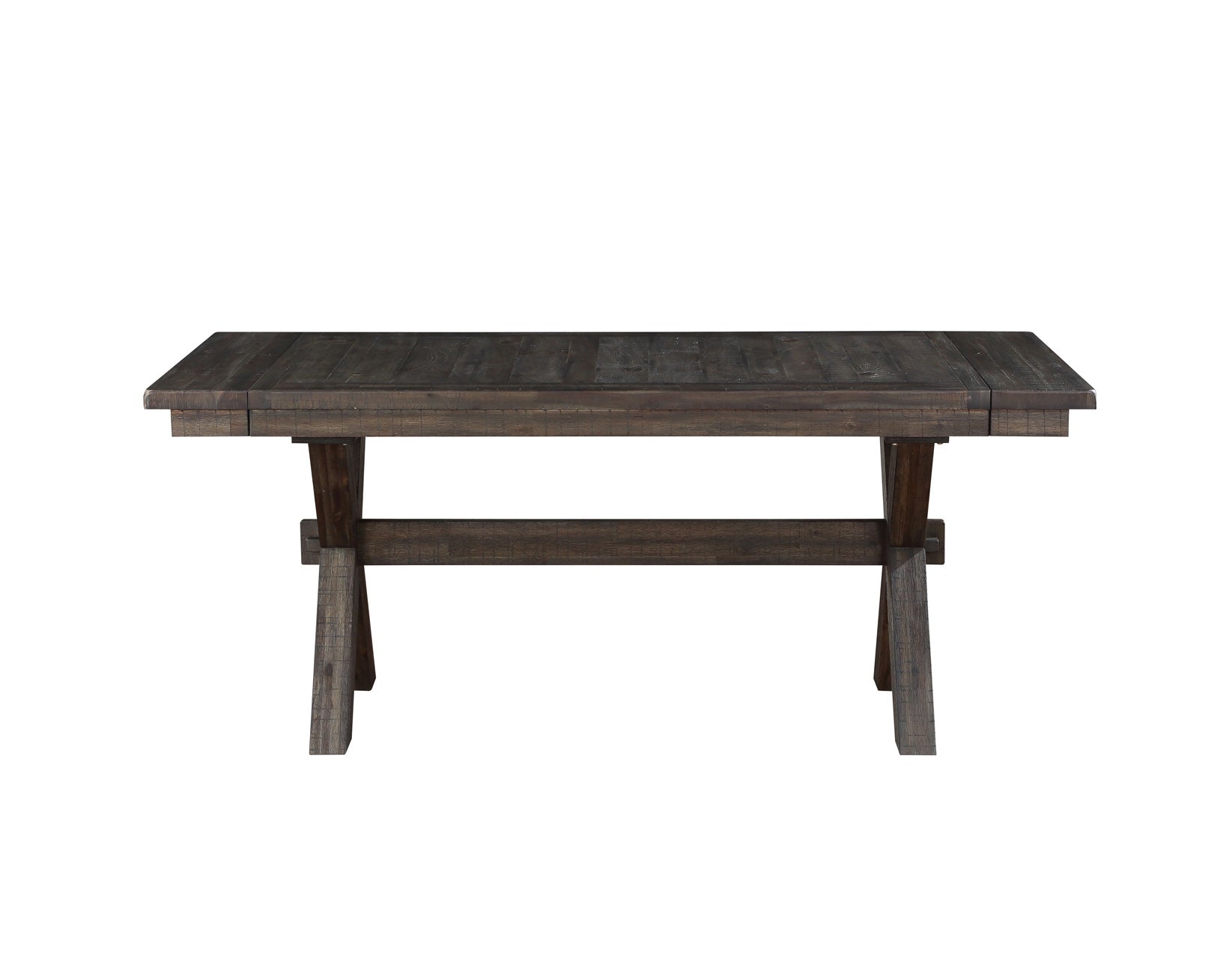 The Riverdale 72-96-inch Dining Table is a dining centerpiece that beautifully becomes the centerpiece of any dining setting. Crafted with meticulous care from pine veneers, acacia solids and resilient engineered woods, Riverdale extends from 72 to a sprawling 96 inches to easily accommodate up to ten guests. Solid wood legs, paired with robust stretchers, guarantee a foundation of stability and sophistication in a detailed modern ranch design. The table’s allure is heightened by the intricate wood scoring, saw rasping, and a finish rub-through, lending it a distressed, vintage-inspired charm.