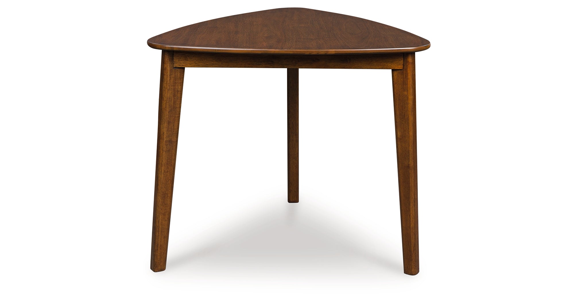 A refreshed take on retro aesthetics. This table adds an air of playful simplicity to your dining space, capturing the architectural language of mid-century stylings. Subtly dynamic in design, it invites the eye with its triangular shape and softly rounded corners. A casual, yet timeless, finish completes this study in form and function.