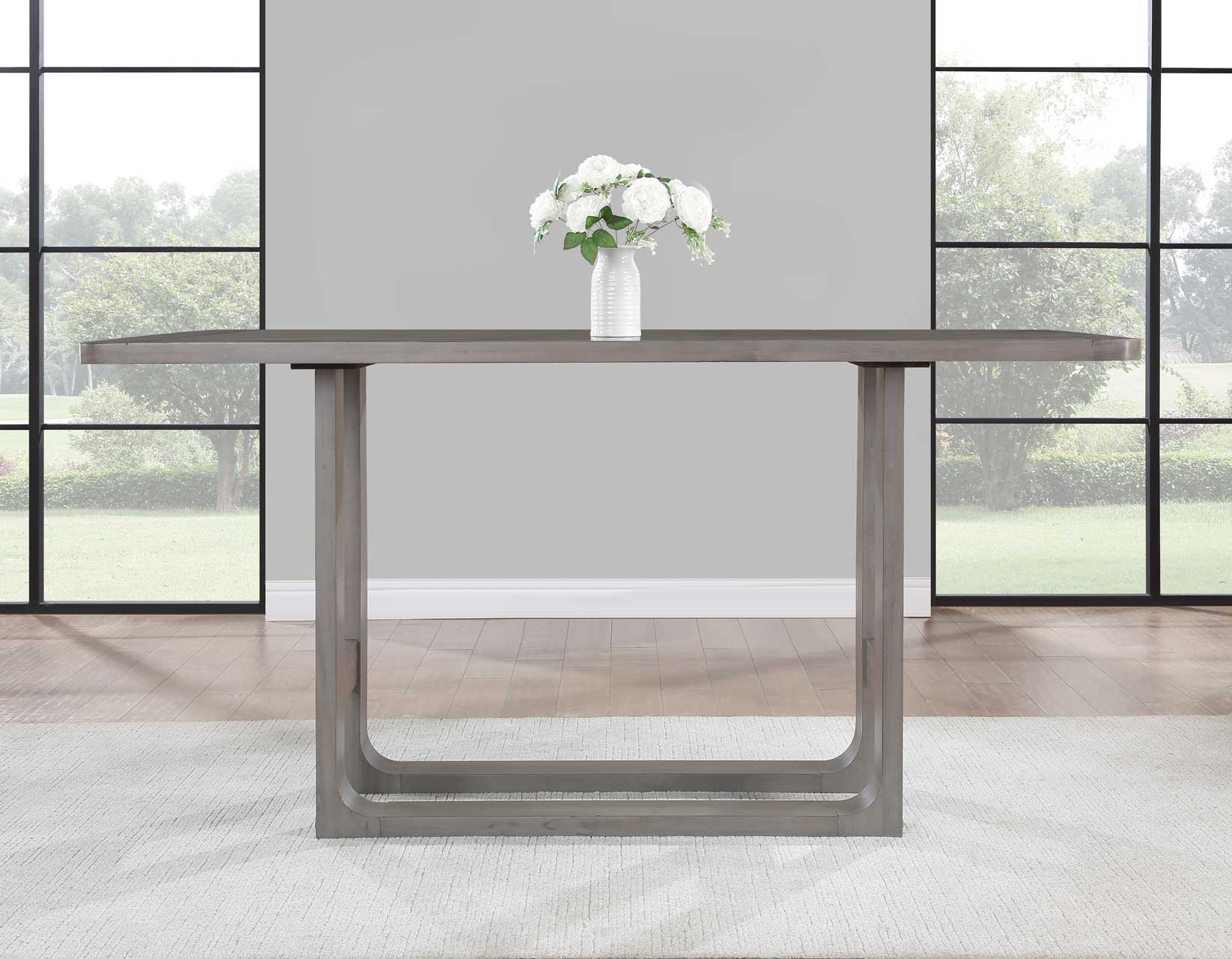 A perfect setting for morning coffee or a formal evening dinner, the Toscana 72-inch dining table brings an elevated sense of style to your dining area. Cozy enough for a small setting but large enough to seat six, this table is a model of modern style blended with rustic mission influences. Clean angular lines are softened with the sled table base and accented by a burnished aged gray finish for a neutral tone that will accent any decor – and the 36-inch high profile makes for an easy dining or work while standing height.