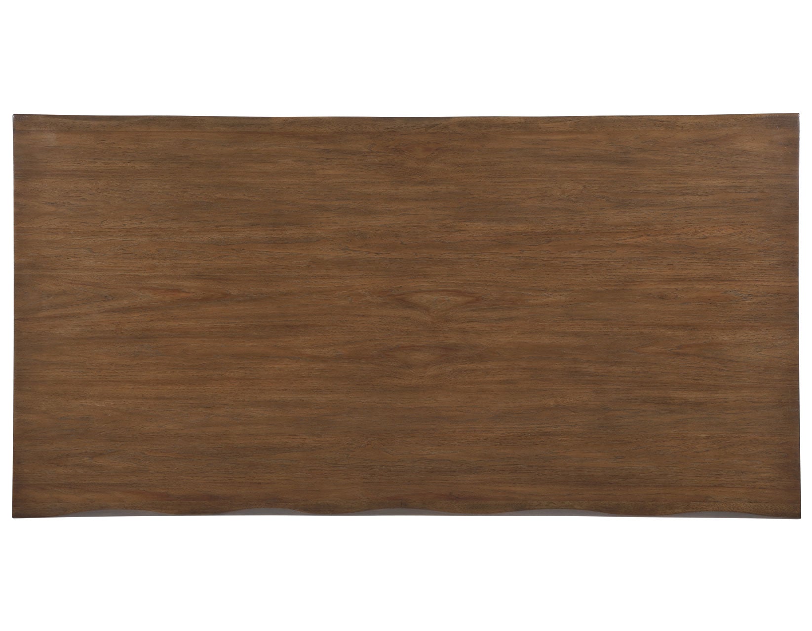 The Tucson 78″ Live Edge Dining Table blends rustic character with industrial strength for a striking centerpiece. The oak veneer tabletop features a rich Mocha finish and a sculpted live edge that highlights the natural beauty of the wood grain. A double pedestal sled base, crafted from black powder-coated iron, adds modern structure and lasting durability. Adjustable levelers provide added stability on any surface. With seating for six to eight, Tucson brings artisan style and everyday function to any dining space.