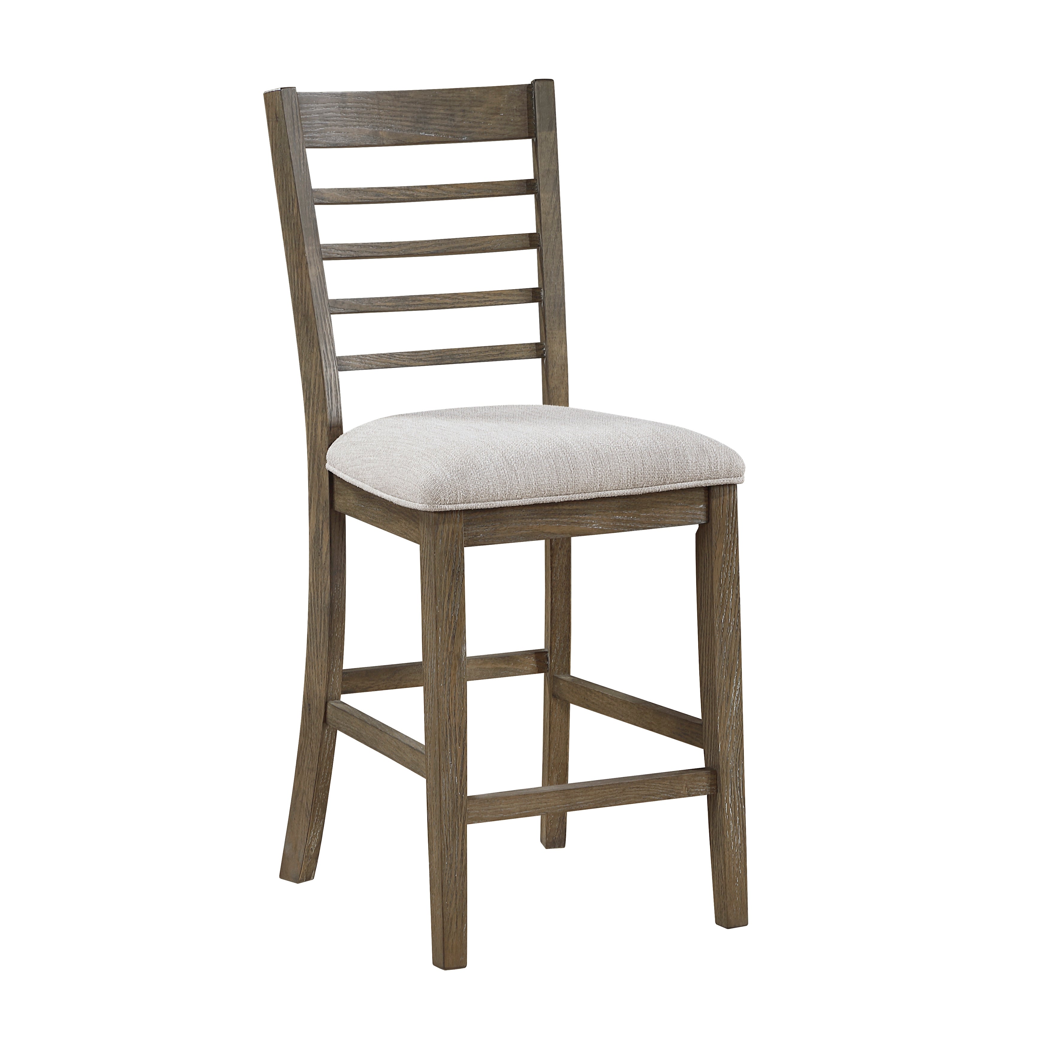 Elevate your dining experience with the light brown six-piece counter height dining set. This stylish set includes a counter-height rectangular table, four matching counter-height chairs, and a coordinating bench, providing comfortable seating for up to six people. Crafted with durable oak veneer, wood, and engineered wood in a warm light brown finish, this set offers both contemporary style and lasting quality. Each chair and the bench feature a fabric-upholstered seat cushion, ensuring a comfortable perch for casual meals and gatherings. Perfect for smaller spaces or creating a more relaxed dining atmosphere, this counter height set is a versatile and inviting addition to any home. Please note that assembly is required upon arrival.