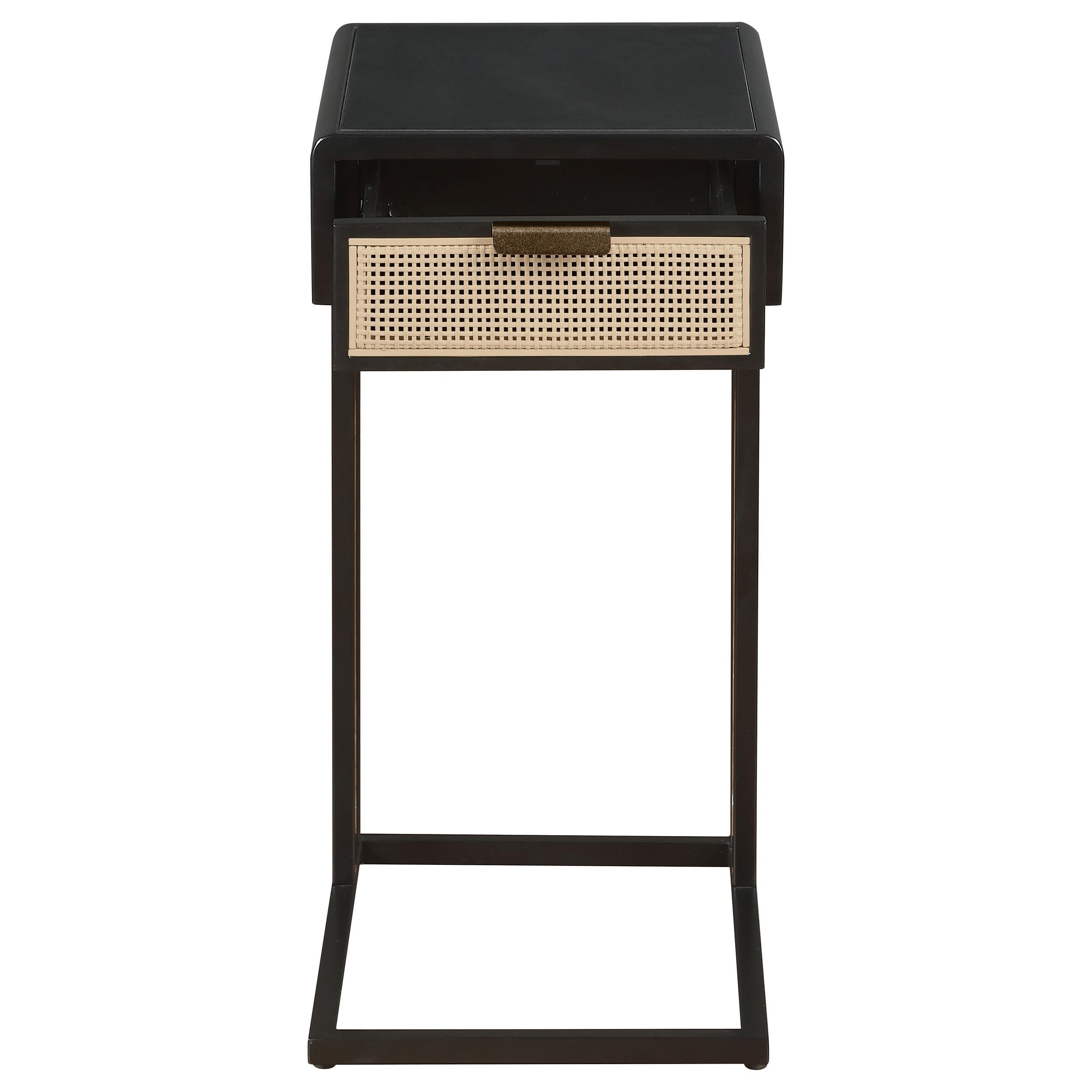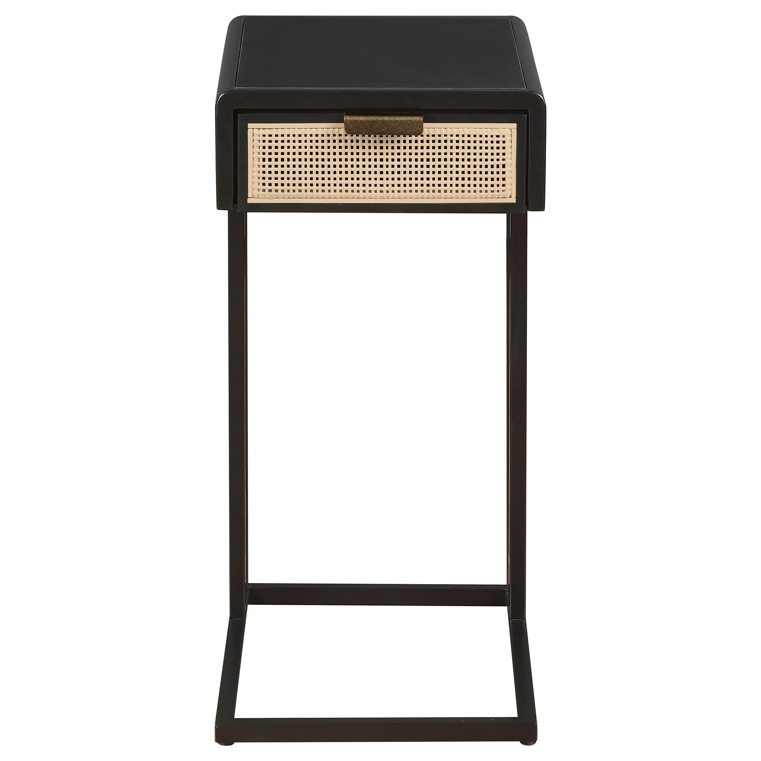 Amherst Black 1-Drawer Radio Weave Cane Metal Side Table