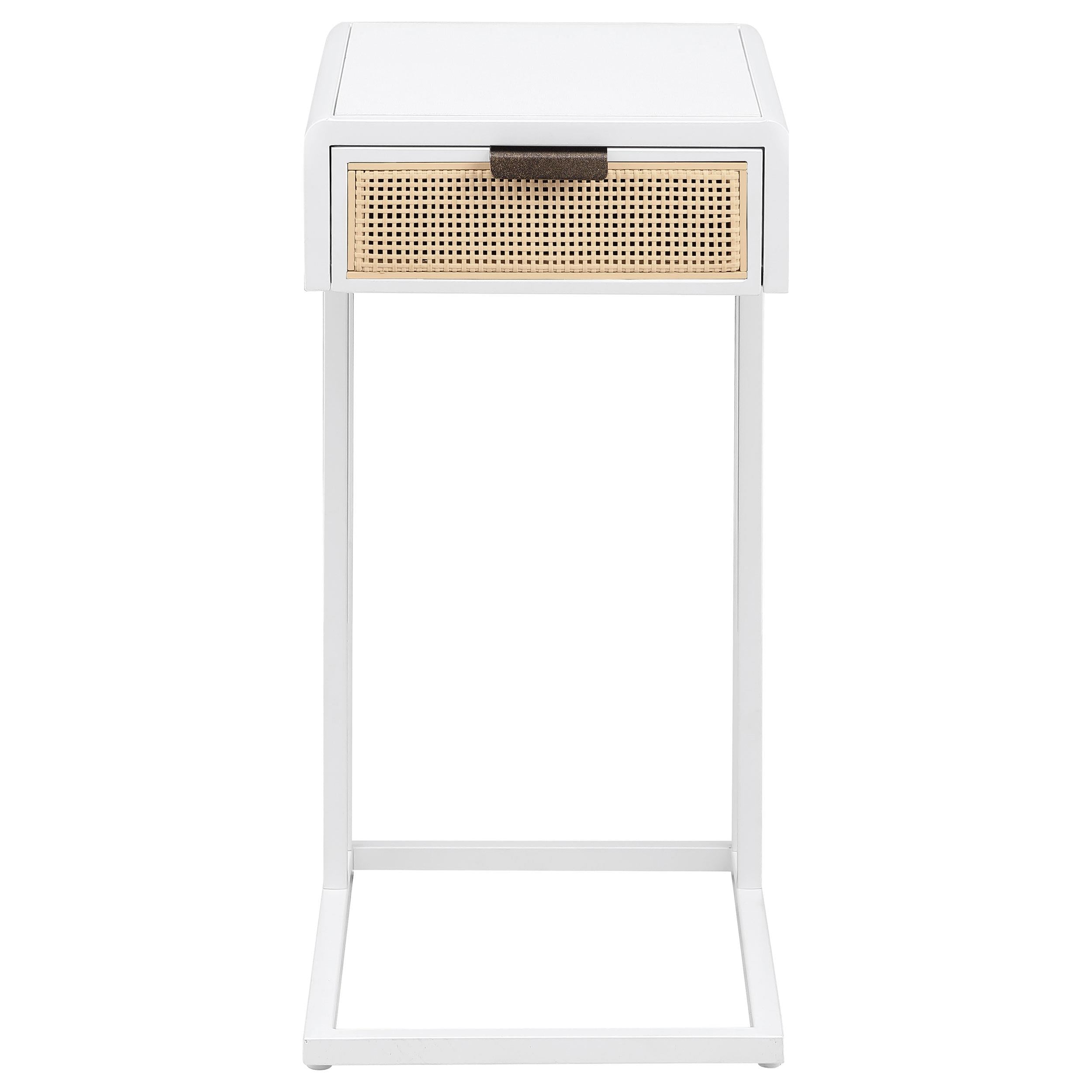 Amherst White 1-Drawer Radio Weave Cane Metal Side Table
