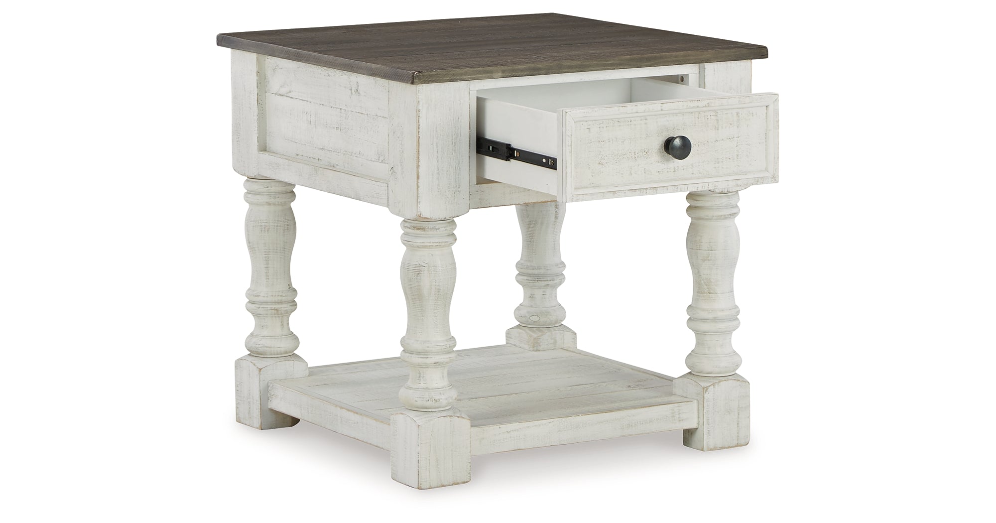 What a fresh interpretation of country classic style. Inspired by American farmhouse craftsmanship, but with an elevated sensibility, this square end table blends distinctive details such as turned post accents and raised drawer fronts for a substantial look that feels right at home. Those who appreciate rustic character should take note of the table’s thick crown moulding, beautified with a vintage two-tone finish. Robust legs lend a hearty, substantial feel ready to withstand the test of time. — Luna Furniture introduces Havalance End Table to enhance the beauty of your living spaces.