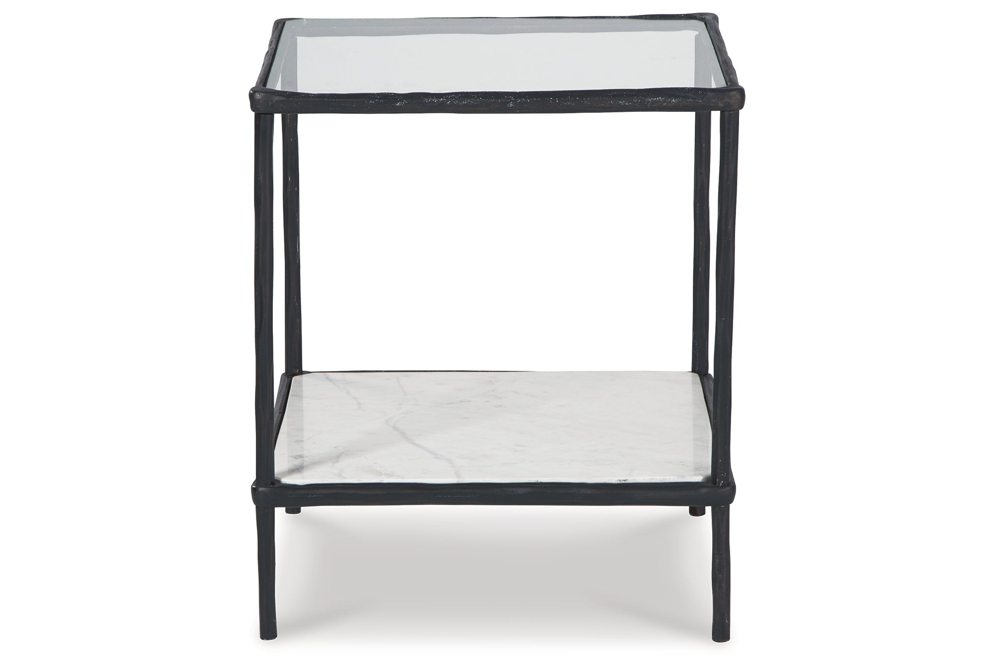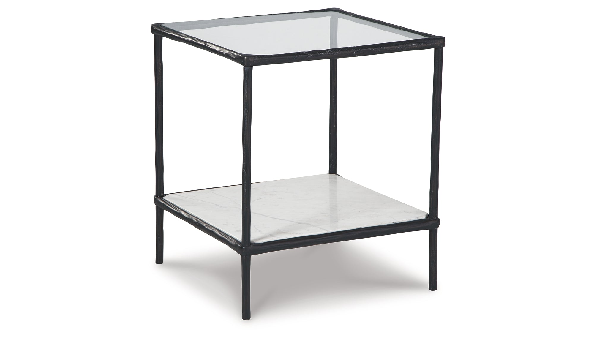 Classic in design with a dash of textural appeal, this accent table provides both flair and function. The glass tabletop offers the perfect perch for a lamp, while the white marble lower shelf is ideal for resting trendy coffee table books and other decorative pieces. An antiqued black finish on the frame has an edgy look that remains versatile, suiting spaces from casual to contemporary. — Luna Furniture introduces Ryandale Accent Table to enhance the beauty of your living spaces.