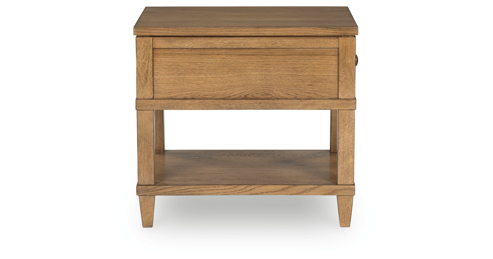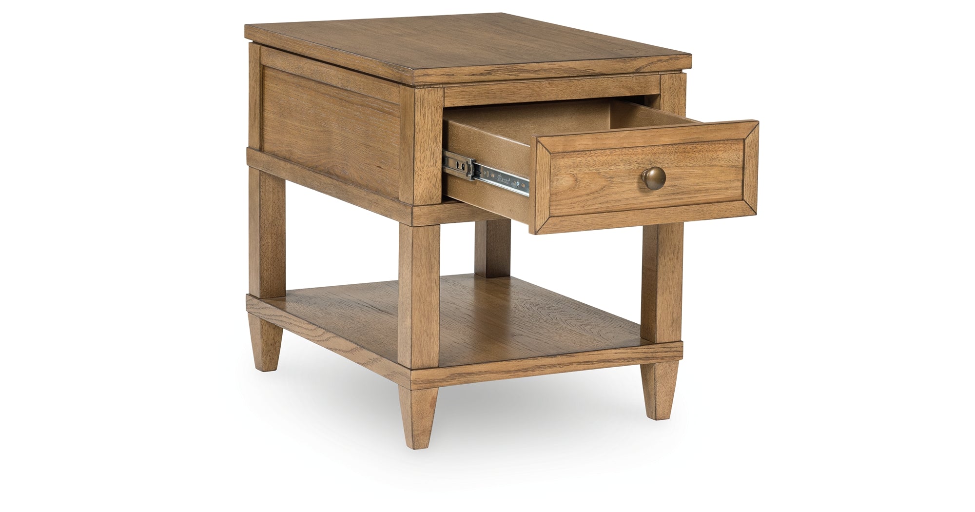 Taking a timeless approach to casual beauty, this end table brings easygoing elegance to the everyday. The light brown wood-tone finish seamlessly slips into your room’s aesthetic. A dark bronze-tone pull accents the drawer, adding to the table's fresh approach to transitional stylings. And built-in USB charging makes scrolling while lounging on the sofa that much more convenient. — Luna Furniture introduces Sharlance End Table to enhance the beauty of your living spaces.