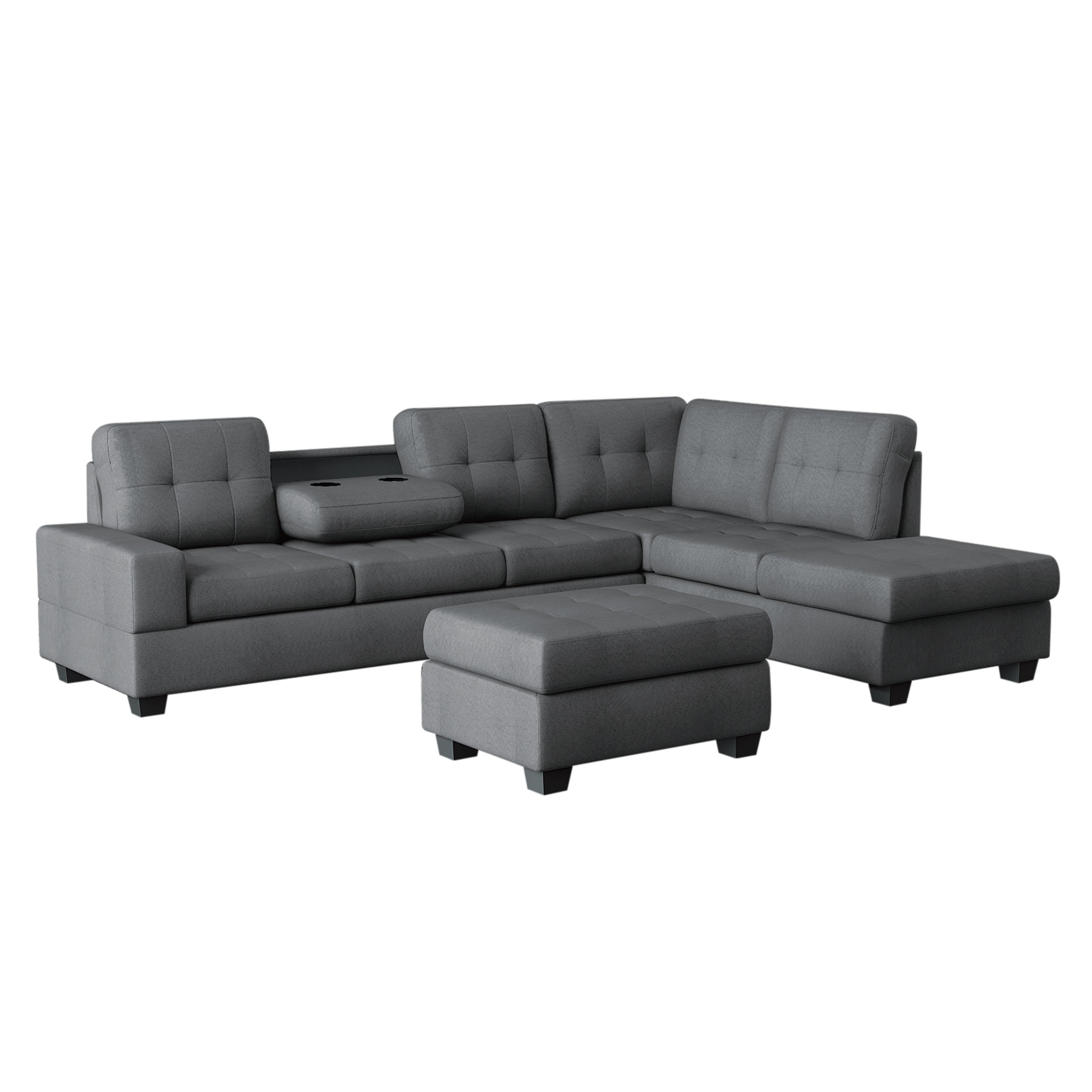 2-Piece Reversible Sectional with Drop-Down Cup Holders and Storage Ottoman