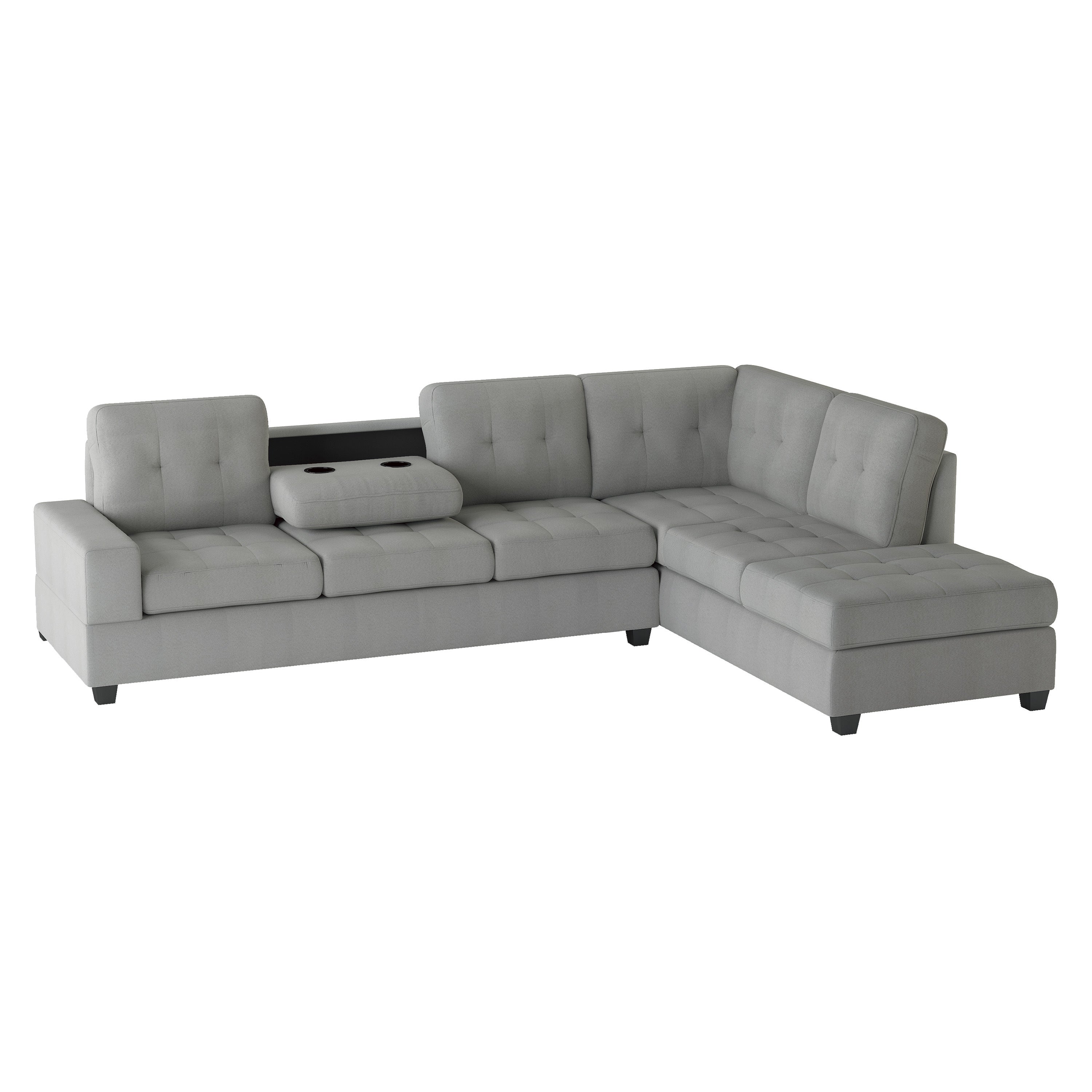 2-Piece Reversible Sectional with Drop-Down Cup Holders and Storage Ottoman