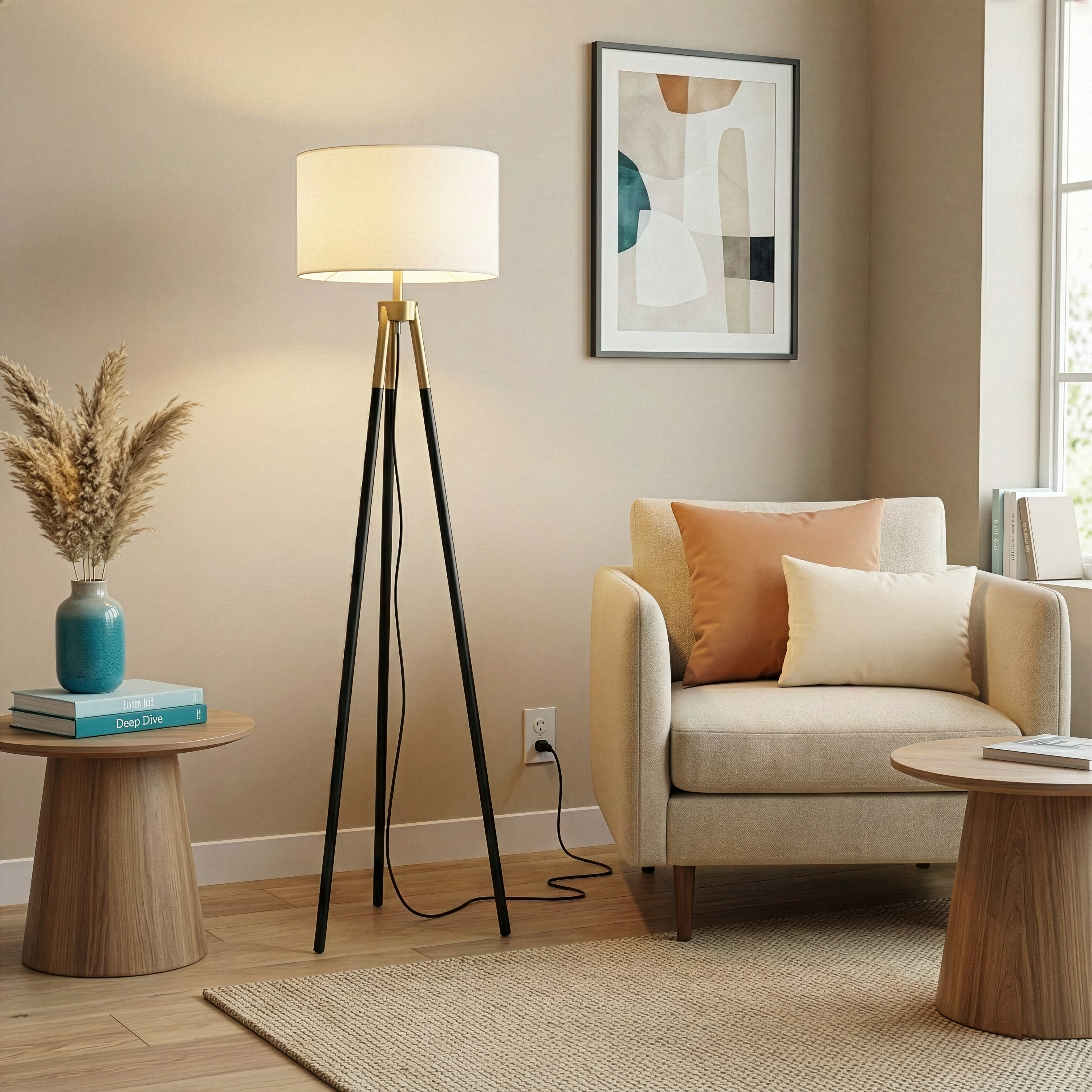 Add a touch of elegance to any room with the Sway Brassed Gold Floor Lamp. The distinctive triple legs and white fabric shade create a unique silhouette that is both modern and timeless. And with the convenient on/off switch, this lamp is not only stylish but also practical for everyday use. Illuminate your space in style with Sway. Transform your living space with the stunning Sway Brassed Gold Floor Lamp. With its eye-catching triple legs and chic white fabric shade, this lamp adds a touch of sophistication to any room. But it's not just about looks - the on/off switch makes it incredibly easy to use, making it a practical choice for everyday use. Say goodbye to dull lighting and elevate your space with the sleek and stylish Sway.