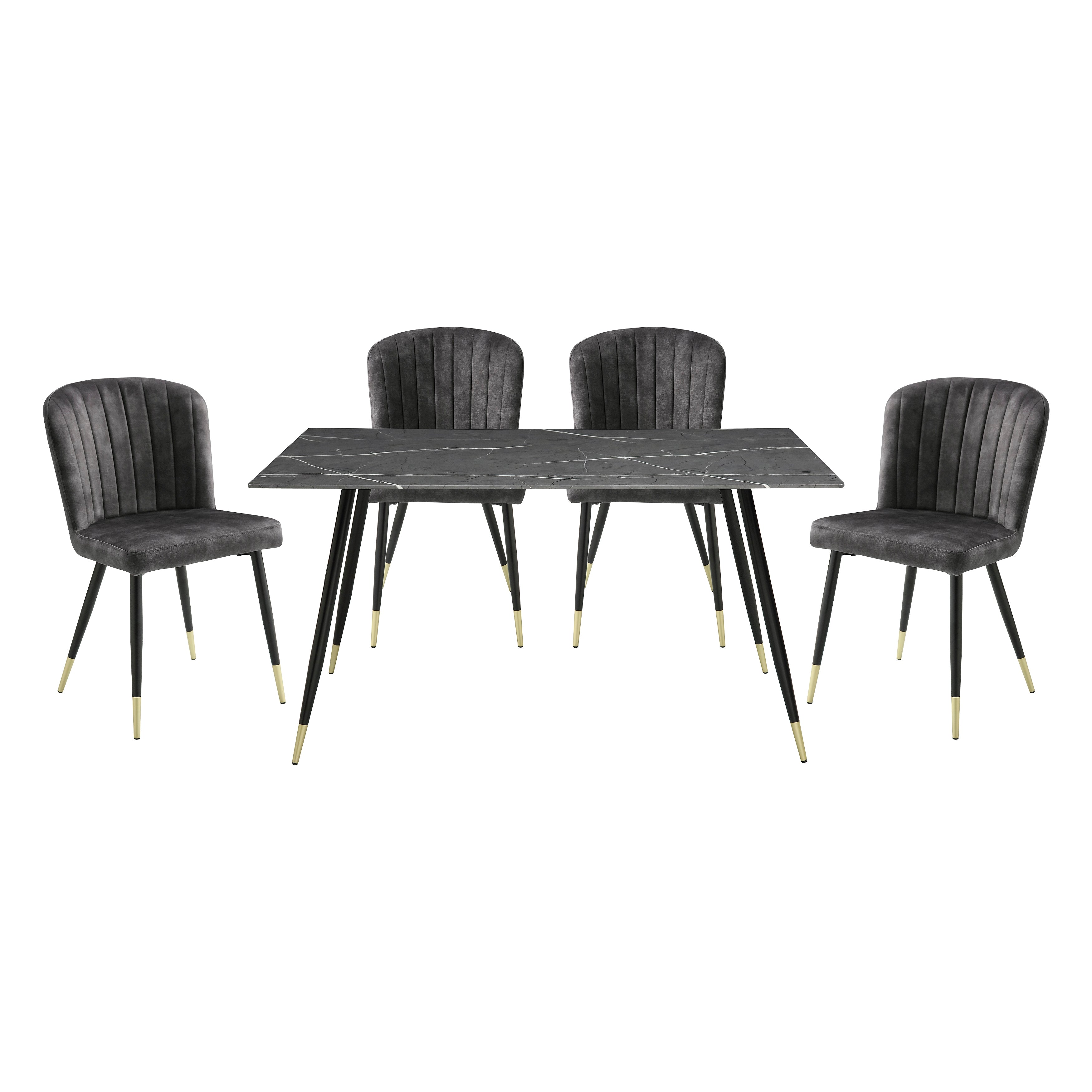 Clemente Gray 5-Piece 60" Marble-Print Tempered Glass-Top Dining Set