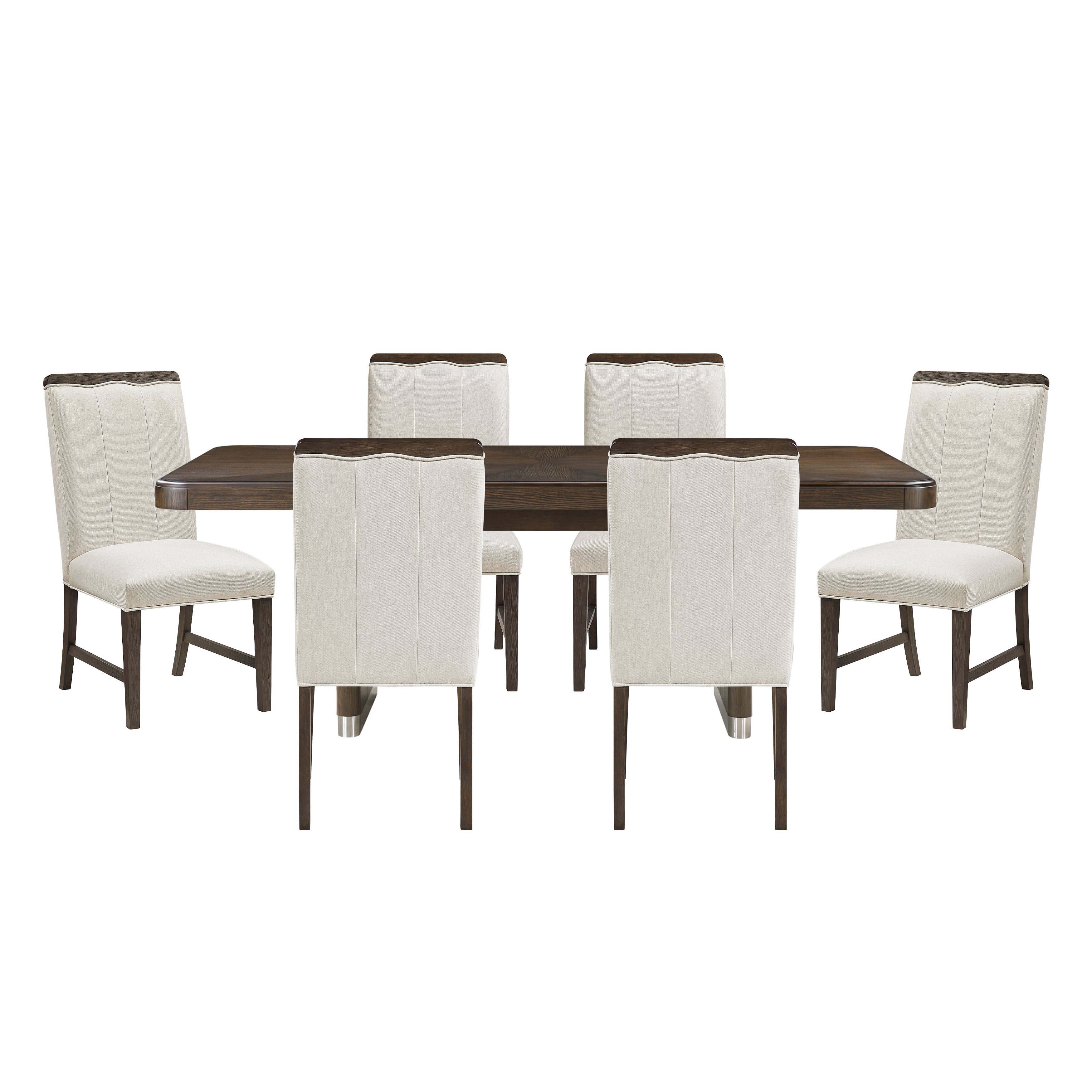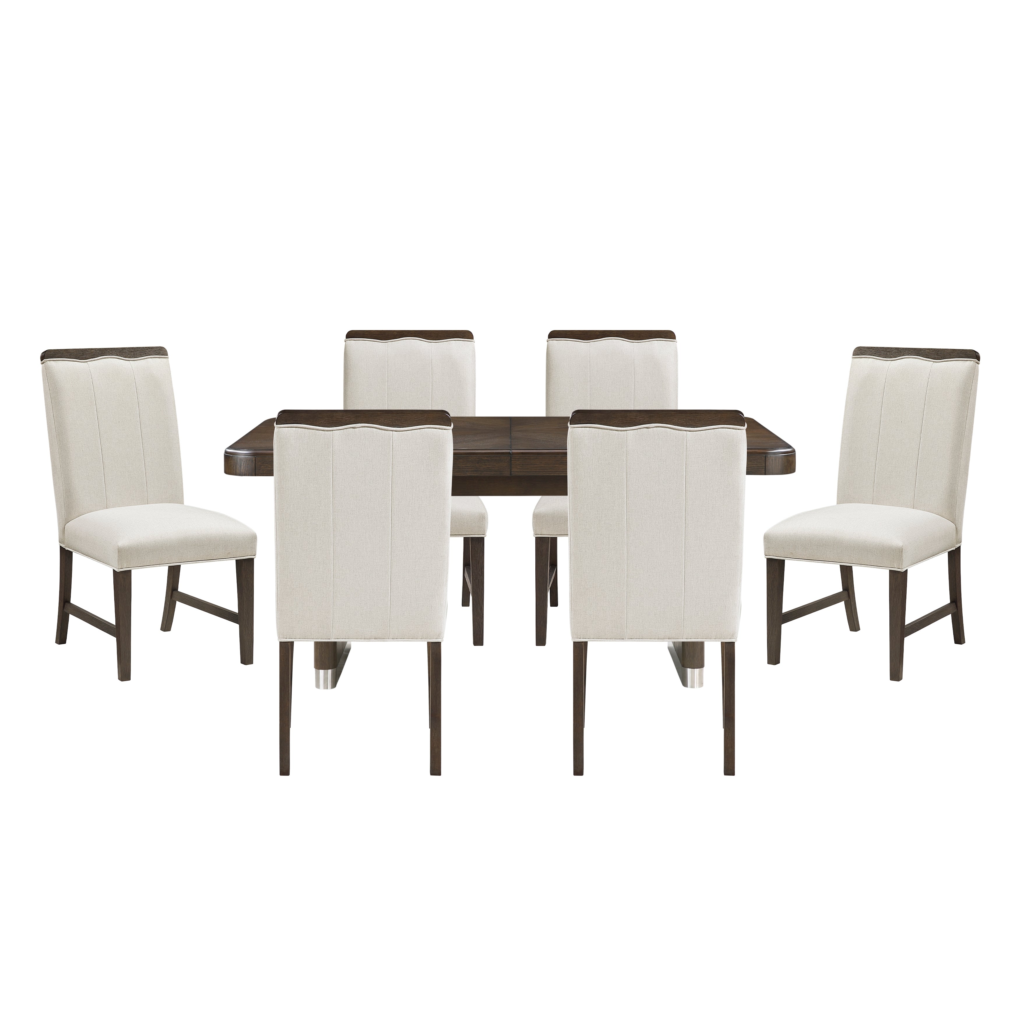 Clara Brown/Beige 7-Piece 85" Rectangular Dining Room Set
