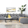 Gather around this large sectional sofa, featuring six modular pieces that invite you to rearrange it as needed for company and parties. Thick wide bases with waterfall edge-like profiles are accented with welt trim for a sleek tailored aesthetic. Perfect for accompanying your existing decor, the softly textured grey woven fabric offers a neutral and monochromatic color palette, welcoming fellow neutrals or adding a backdrop to vibrant colors. Matching pillows make up the back cushions, leaning back into track style armrests and backs. An ottoman easily transitions from a chaise lounge to a coffee table instantly.