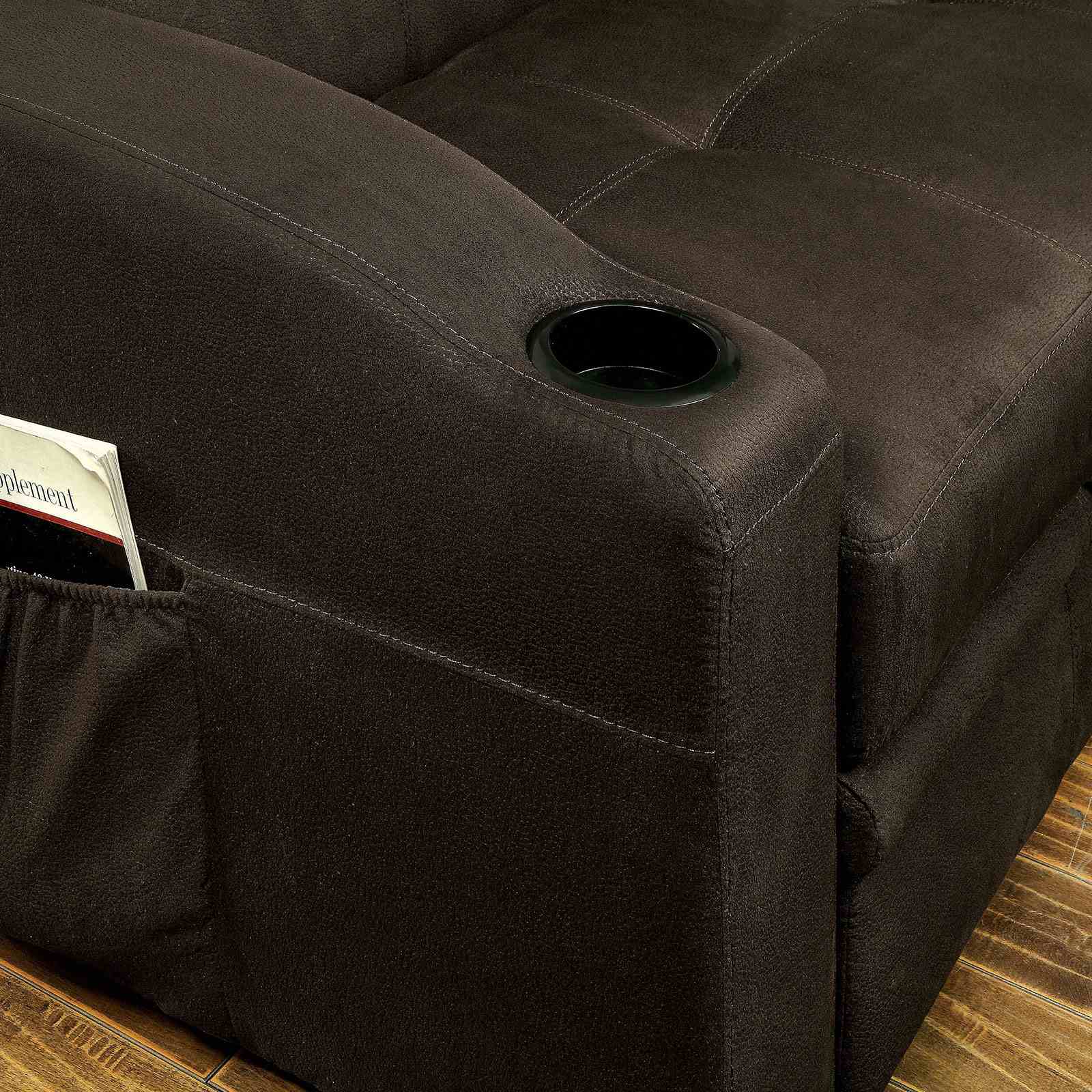 A staple for any mancave or entertainment room, this convertible futon sofa is a handy addition that is well worth the floor space! The sofa frame effortlessly unfolds to become a large bed, but can be transformed into a double-chaise with its pull-out trundle. Built-in cup holders can be found on each arm while side pockets keep reading materials within easy reach. The entire exterior is upholstered in a soft brown fabric that will pair well with any transitional home.