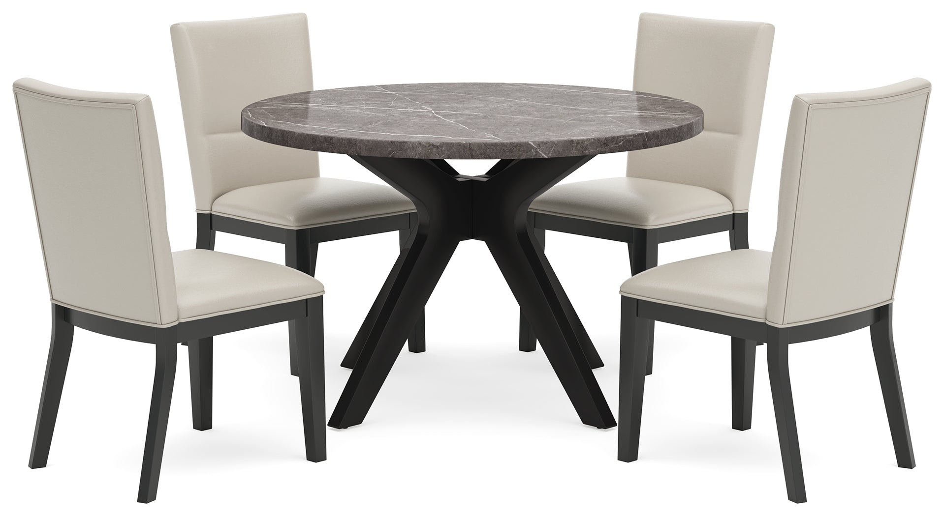 Glinari Dining Table and 4 Chairs in Taupe/Black