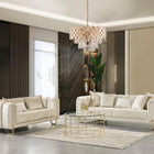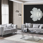 These substantial dimensions deliver generous seating space while maintaining a sleek, modern silhouette that works beautifully in both small and large living rooms. The Santana Smoke Velvet Living Room Set is perfect for those who seek an iconic blend of luxury, comfort, and enduring quality in their interior furnishings.