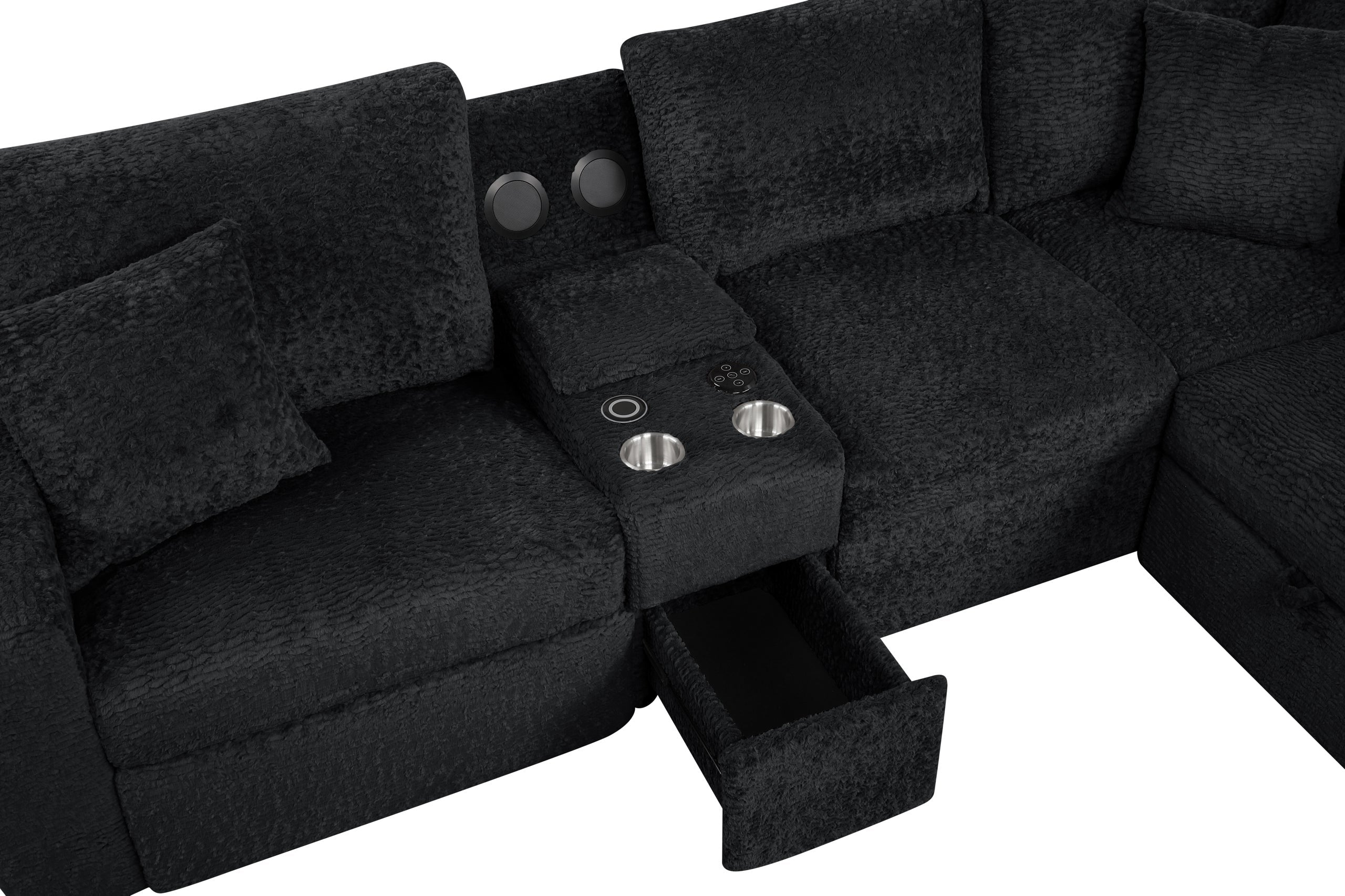 Hunter Black Sectional with Bluetooth Speaker & Pull-Out Bed