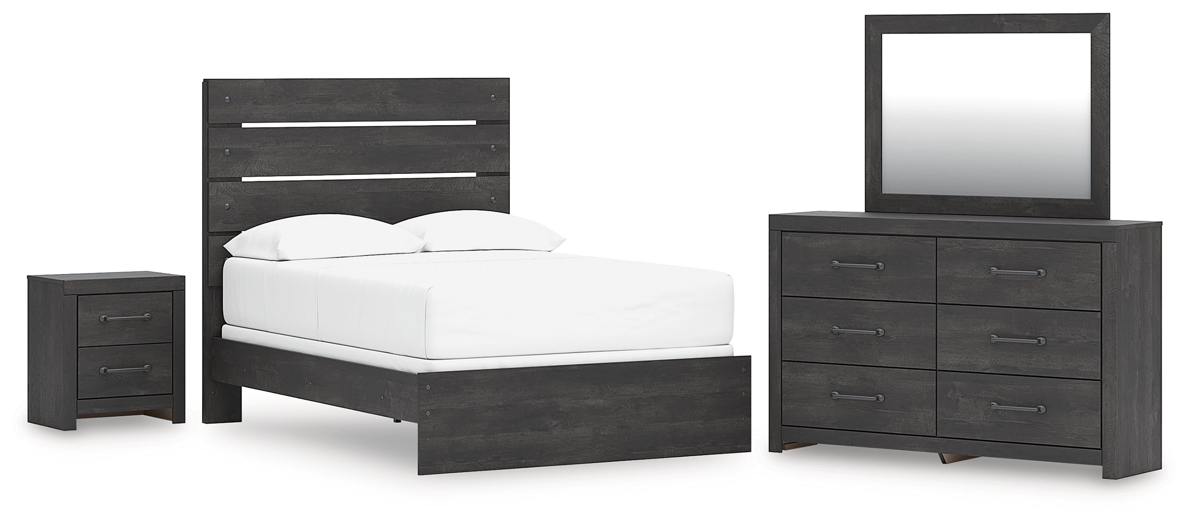 Hollivern Full Panel Bed with Mirrored Dresser and Nightstand in Dark Gray