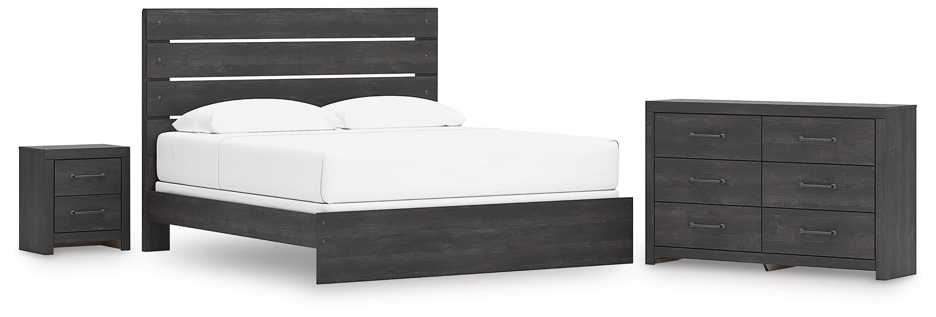 Hollivern King Panel Bed with Dresser and Nightstand in Dark Gray