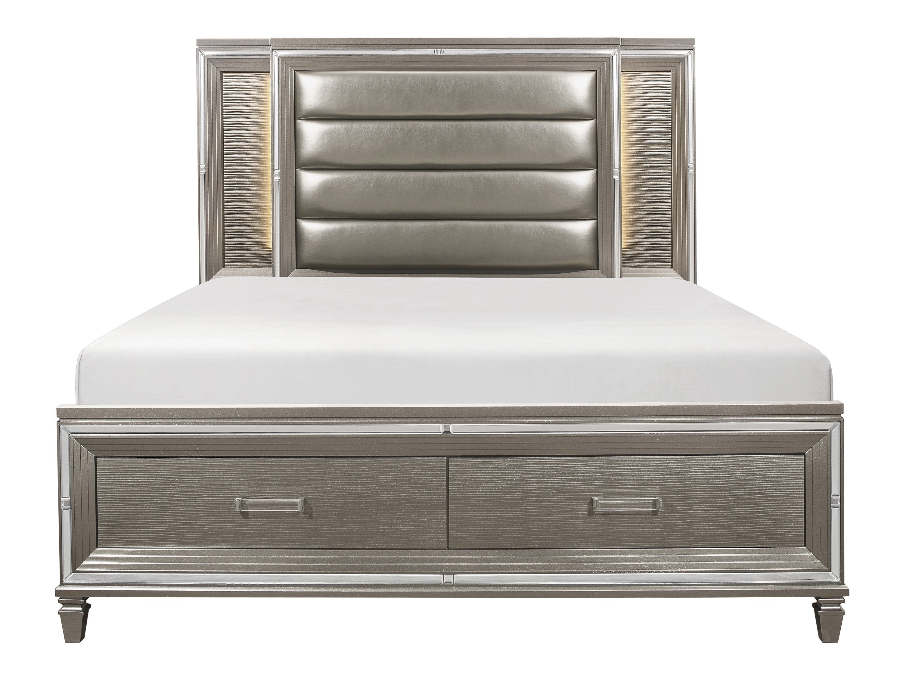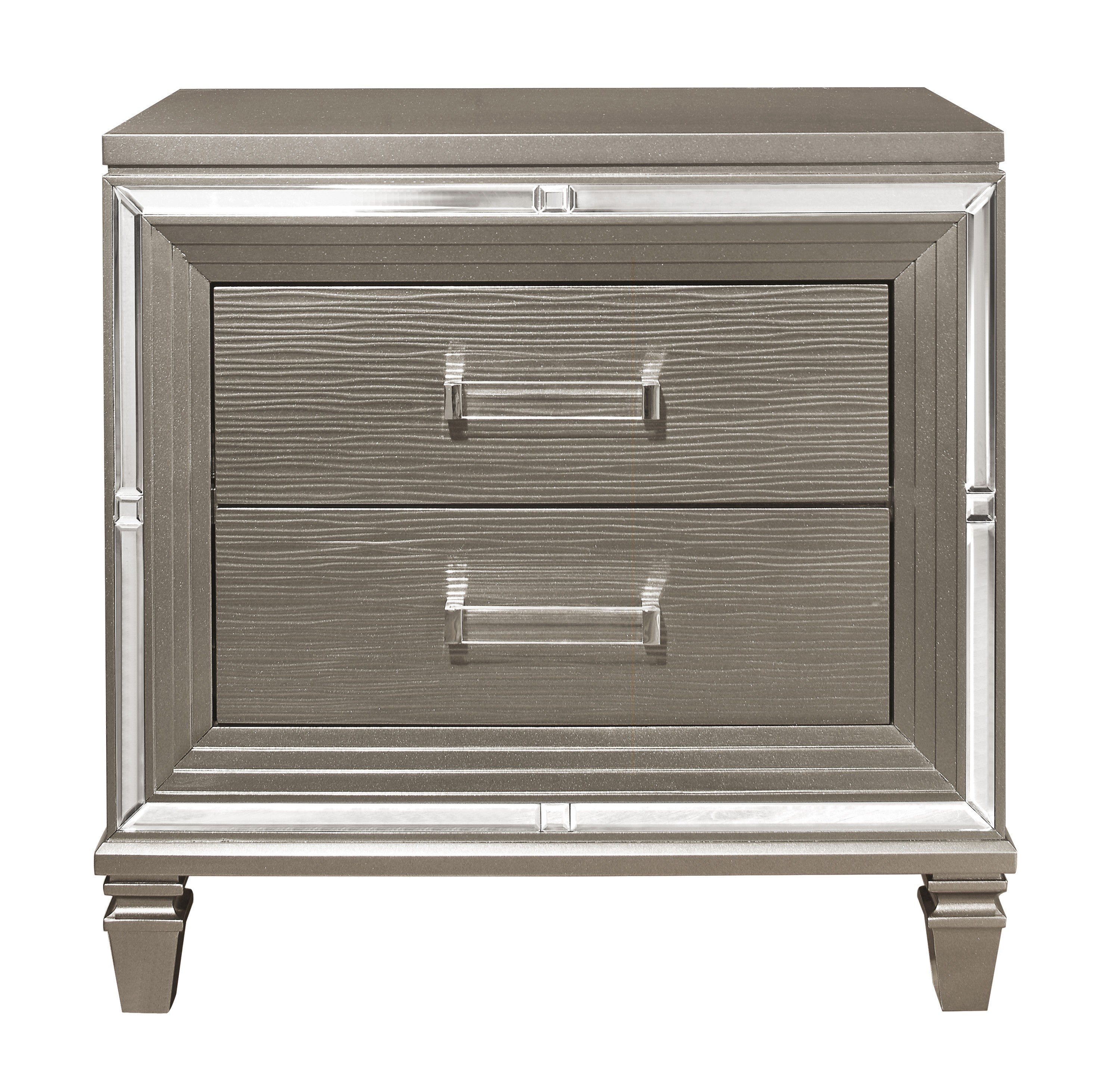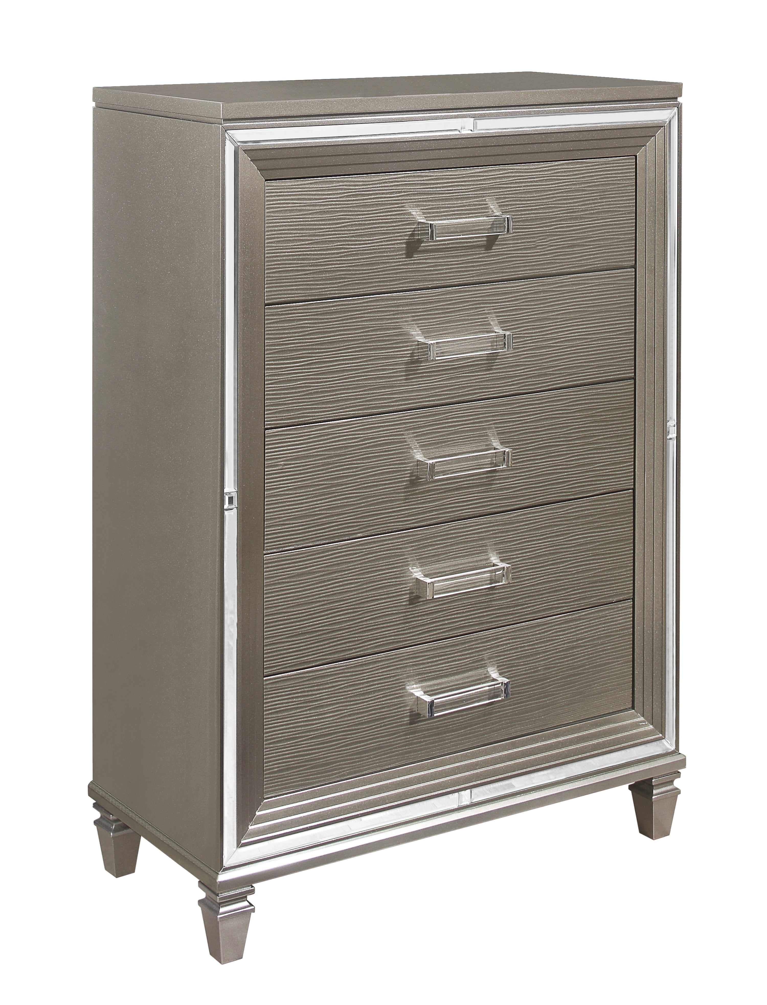 Tamsin Silver/Gray Metallic 5-Piece Bedroom Set (Queen Bed, Nightstand, Dresser, Mirror, Chest)