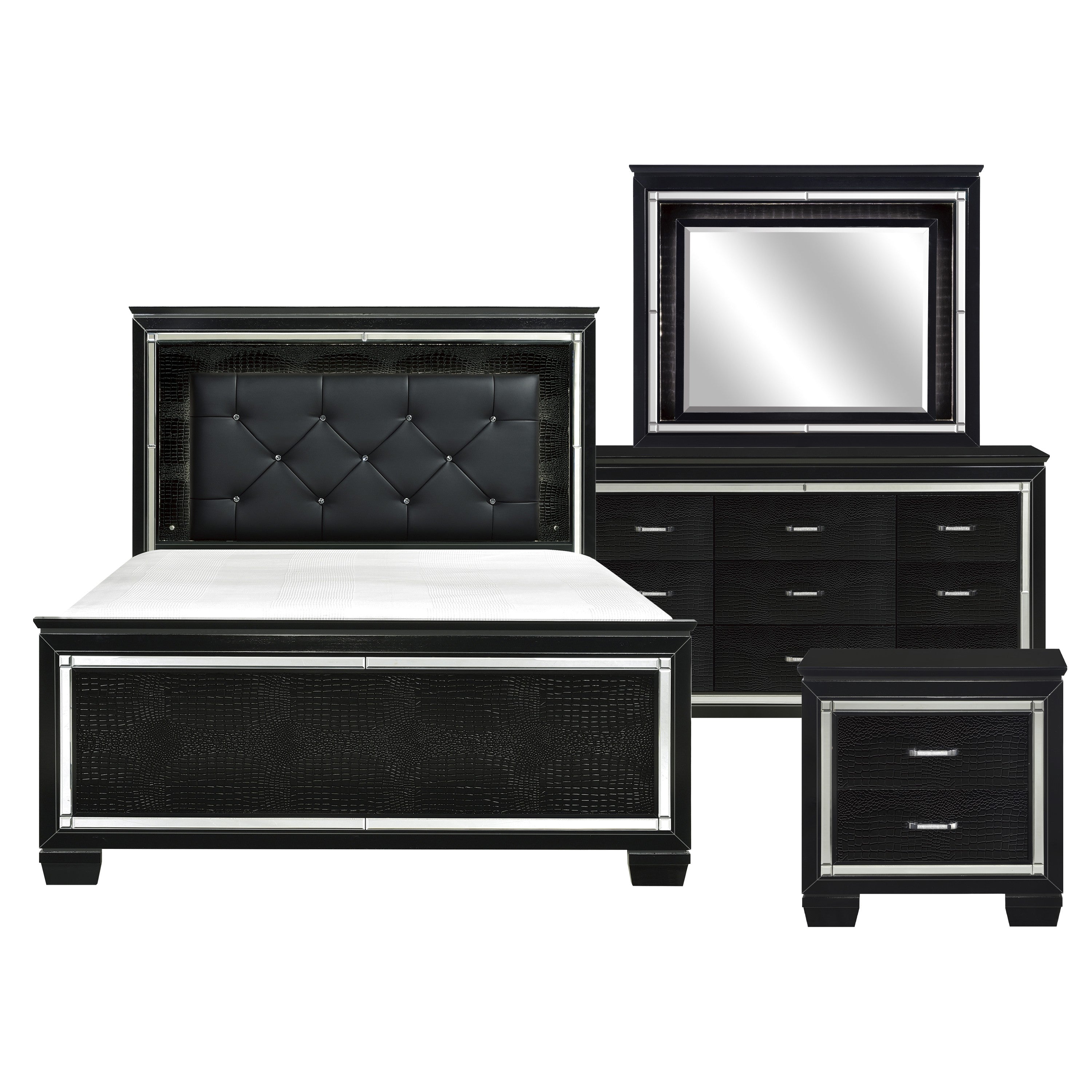 Allura Black 4-Piece Bedroom Set (Queen Bed, Nightstand, Dresser, Mirror)