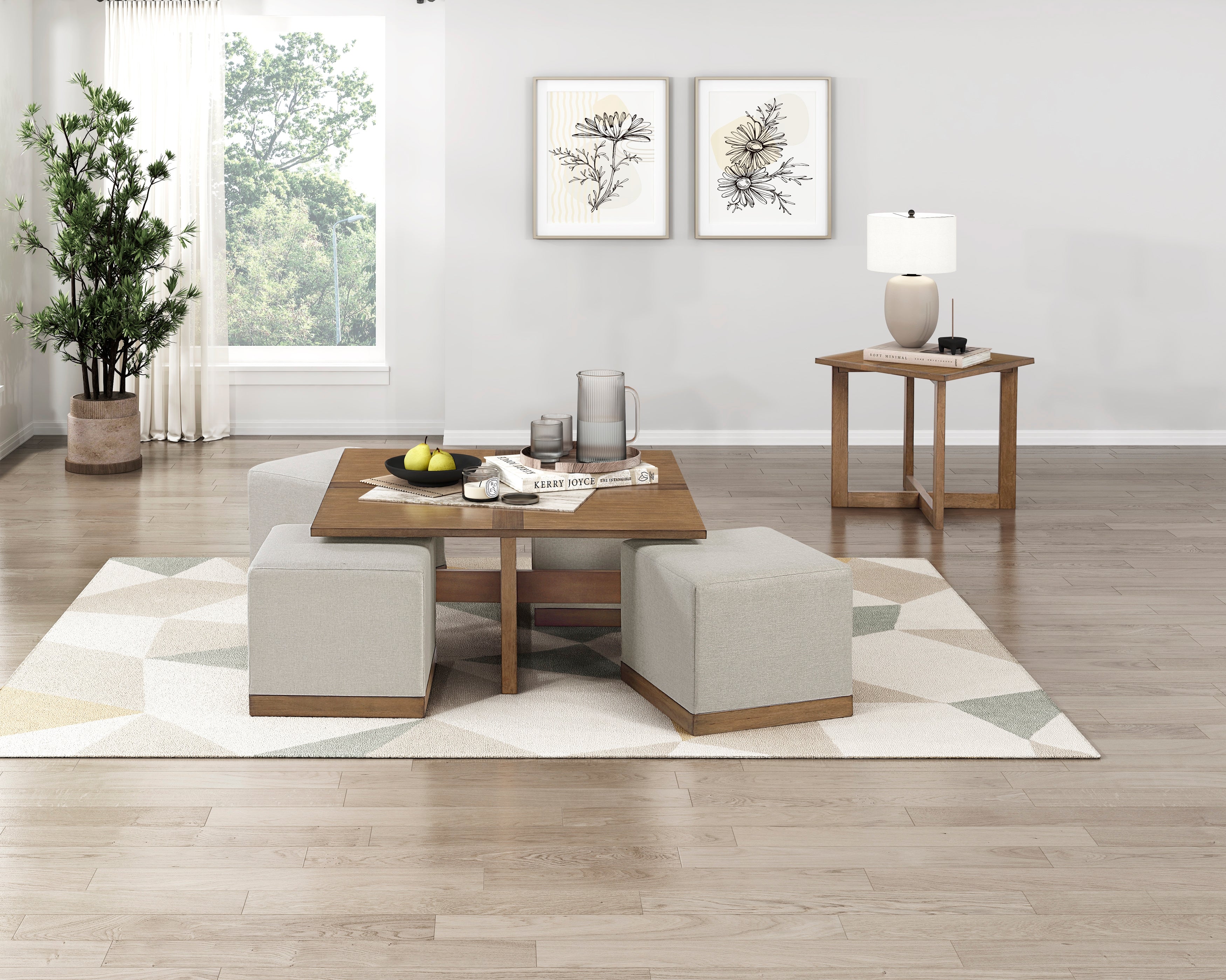 Transform your living space with this stylish and durable square end table, featuring a chic mixed-veneer design that maximizes search appeal for transitional and modern side tables. The tabletop is crafted from a rich combination of maple and walnut veneer in a warm brown finish, highlighted by an elegant cross-patterned design. Built with a sturdy frame of wood and engineered wood, this table provides a stable and long-lasting surface for lamps, drinks, and decor. Its clean lines and sophisticated finish make it a versatile accent piece that easily complements a wide range of sofa and armchair styles.