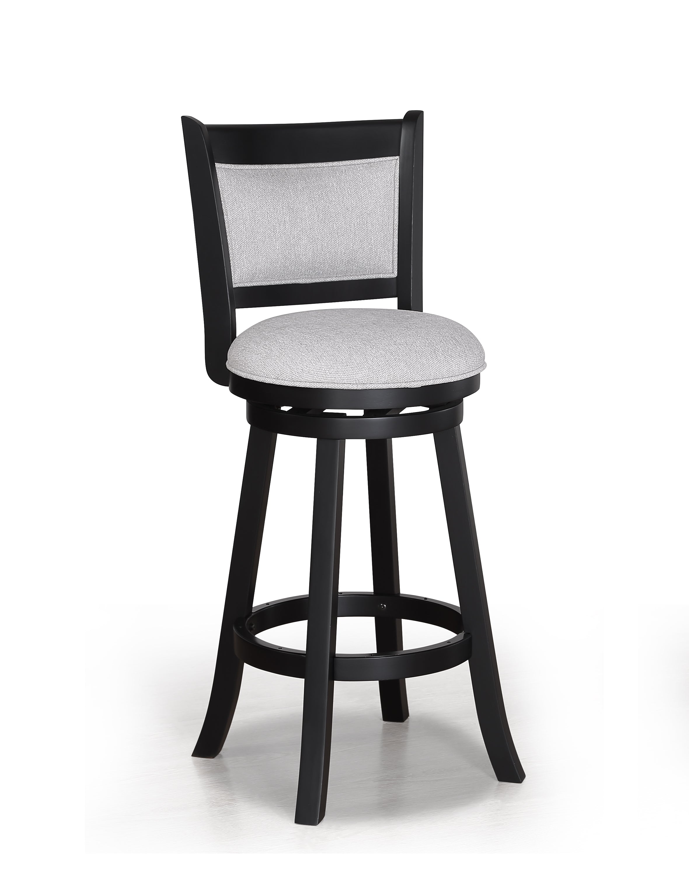 Step up your seating game with our practical bar stool. Boasting a solid wooden frame paired with a soft gray upholstery, this stool ensures both functionality and comfort. Its straightforward design ensures it fits seamlessly into any kitchen or bar area, making it a versatile choice for any home.