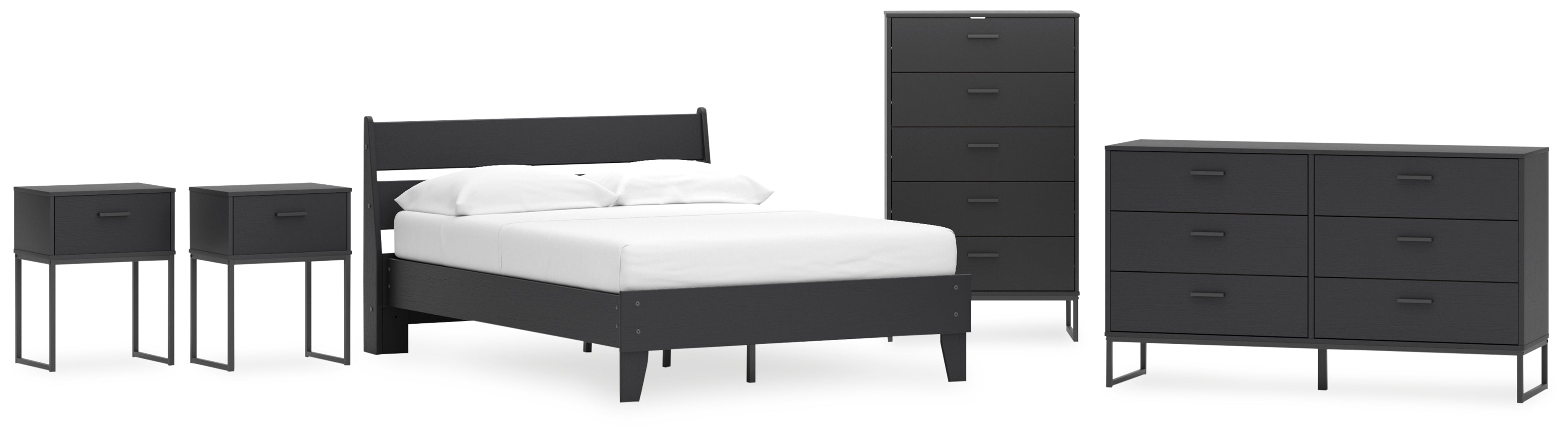 Socalle Full Panel Platform Bed with Dresser, Chest and 2 Nightstands in Black