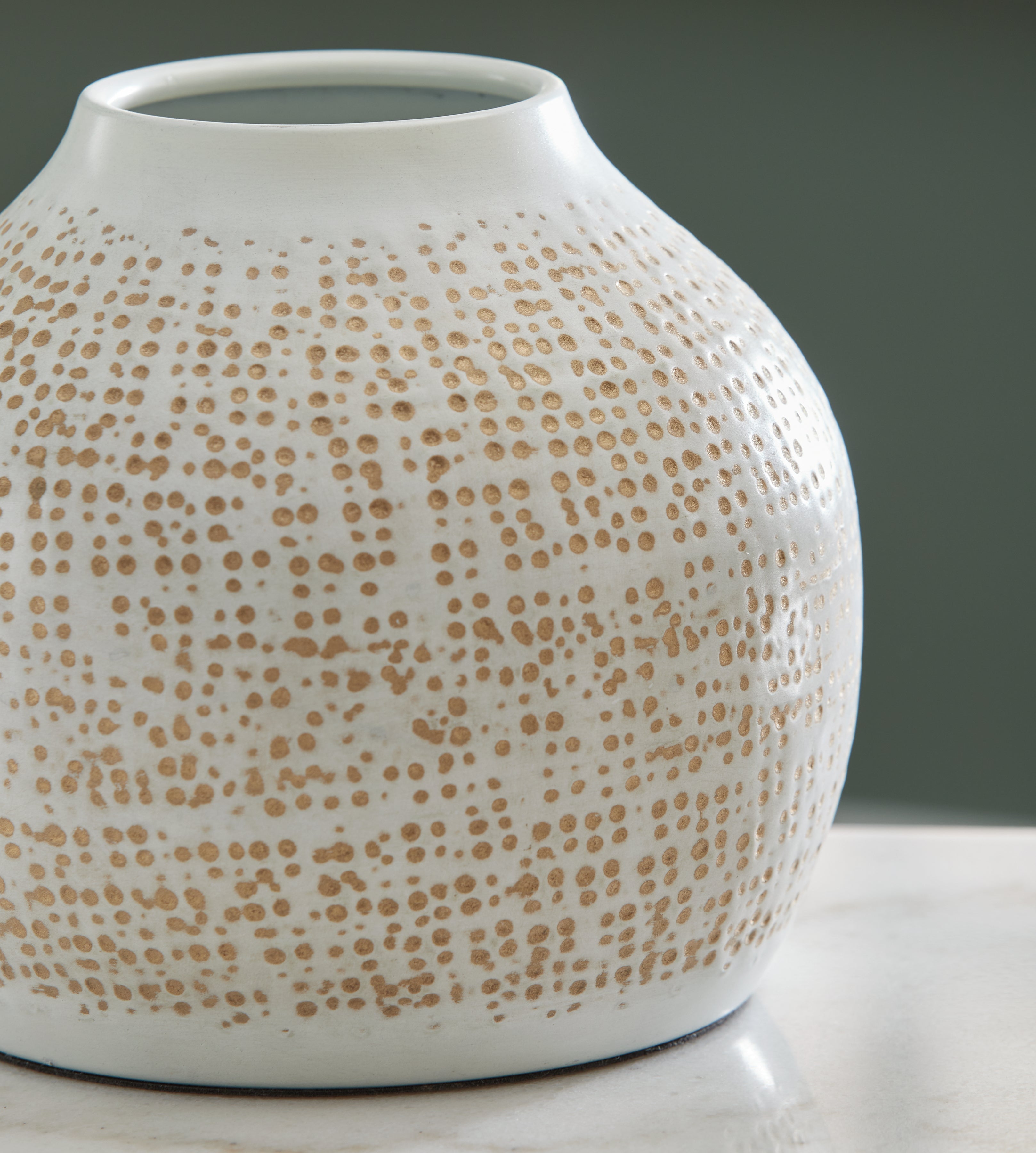 Elevate your decor with this striking accessory set. Its sleek white vases, adorned with delicate goldtone accents, are perfect for displaying your favorite faux blooms or standing alone as minimalist statements. They're paired with bold geometric sculptures, creating a dynamic and sophisticated look for modern spaces. — Luna Furniture introduces Vinburn Accessory Set (Set of 5) to enhance the beauty of your living spaces.