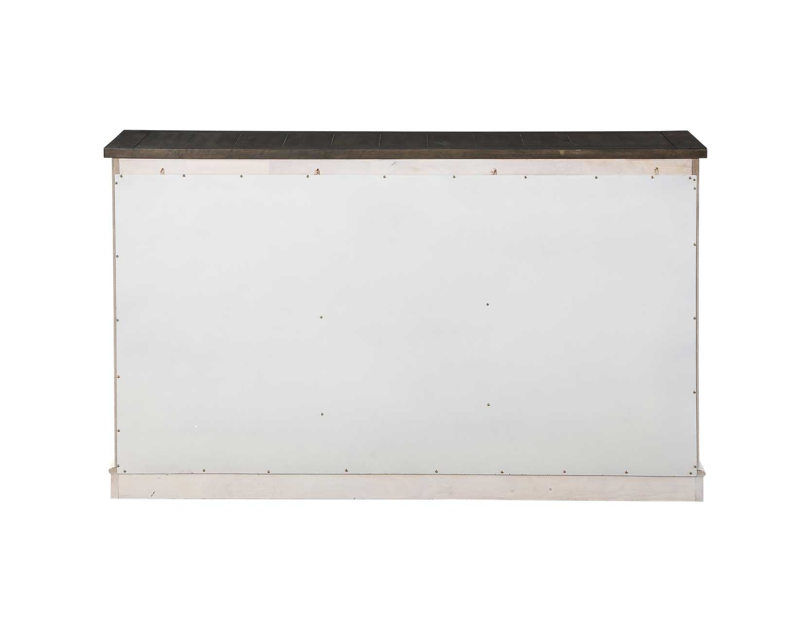 Joanna presents a classic farmhouse Server updated for today’s dining. Turnedpilasters combine with cup pulls to create a look that feels both new and vintage. The Server has a two-tone ivory and mocha and features sliding glass doors that are great for display of collectibles. A middle wine rack with hanging stemware storage and three shelves add to the storage and convenience of the unit.