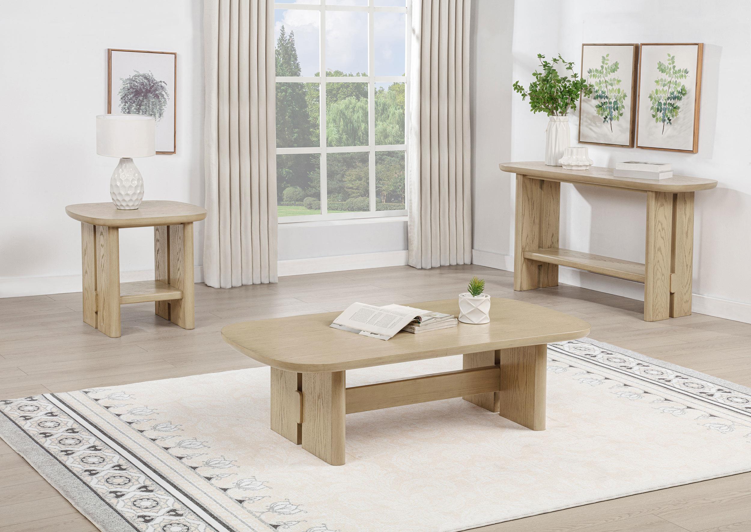 Kailani Beige Oak Coastal Square End Side Table with Shelf