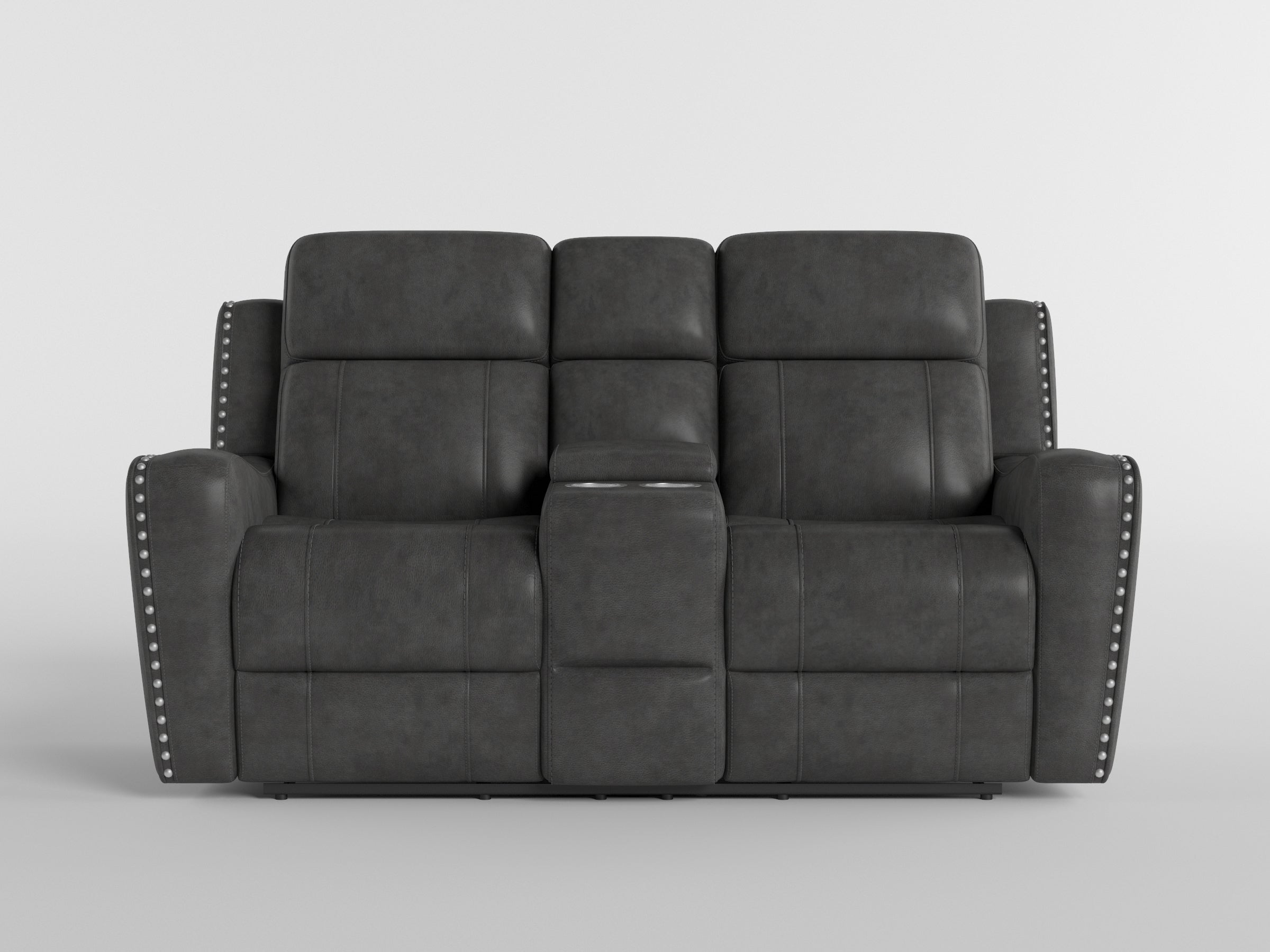 Kellen Smoky Gray Power Double Reclining Loveseat with Center Console