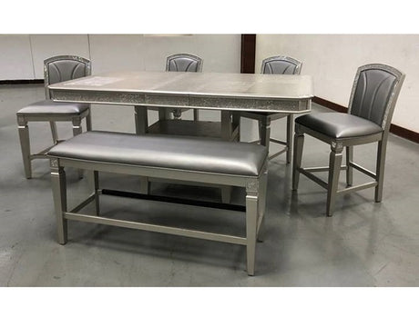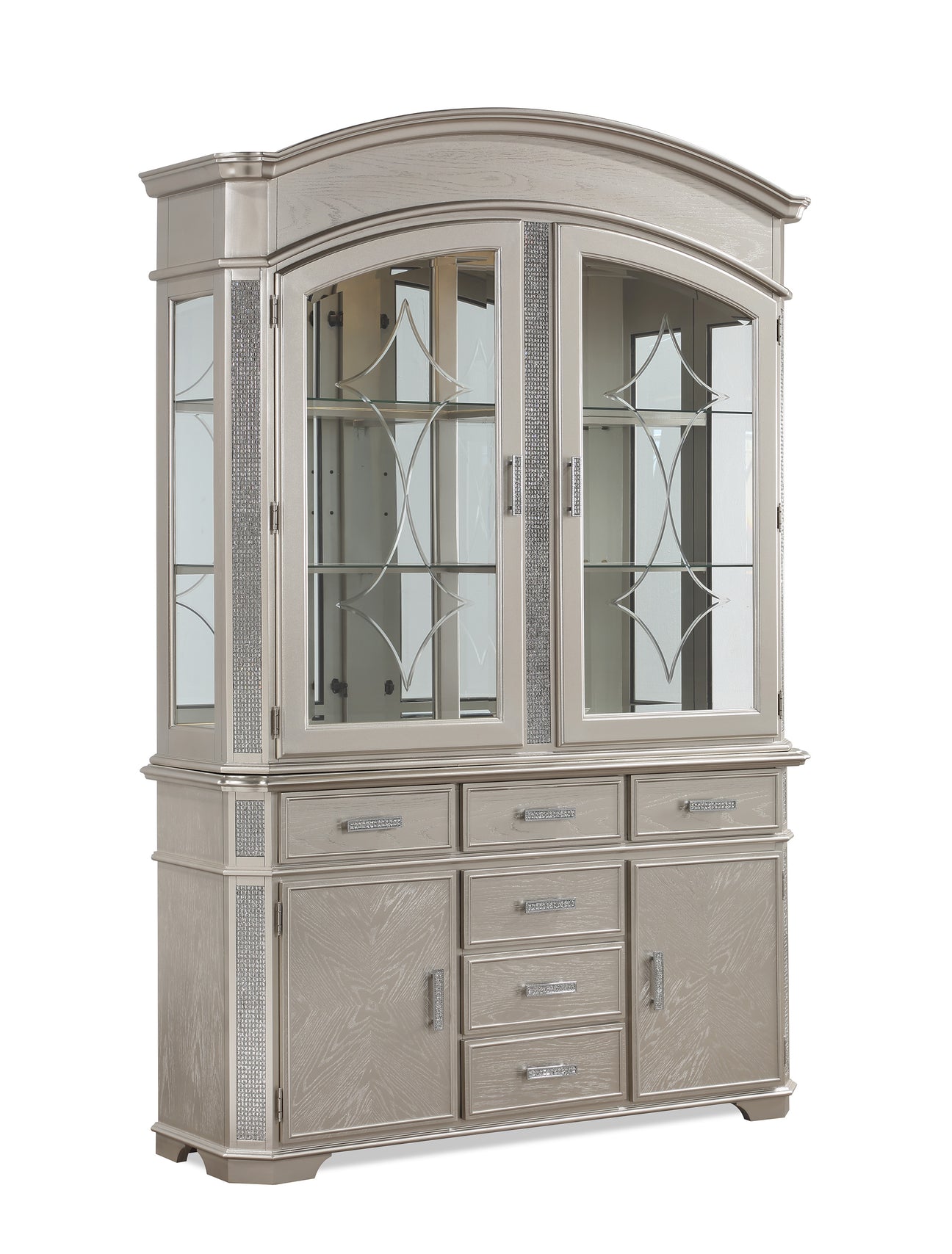 The Klina Collection by Crown Mark is a modern and stylish dining set that features a champagne finish and upholstered seating. The collection includes a variety of pieces, including dining tables, chairs, benches, and a buffet and hutch set.