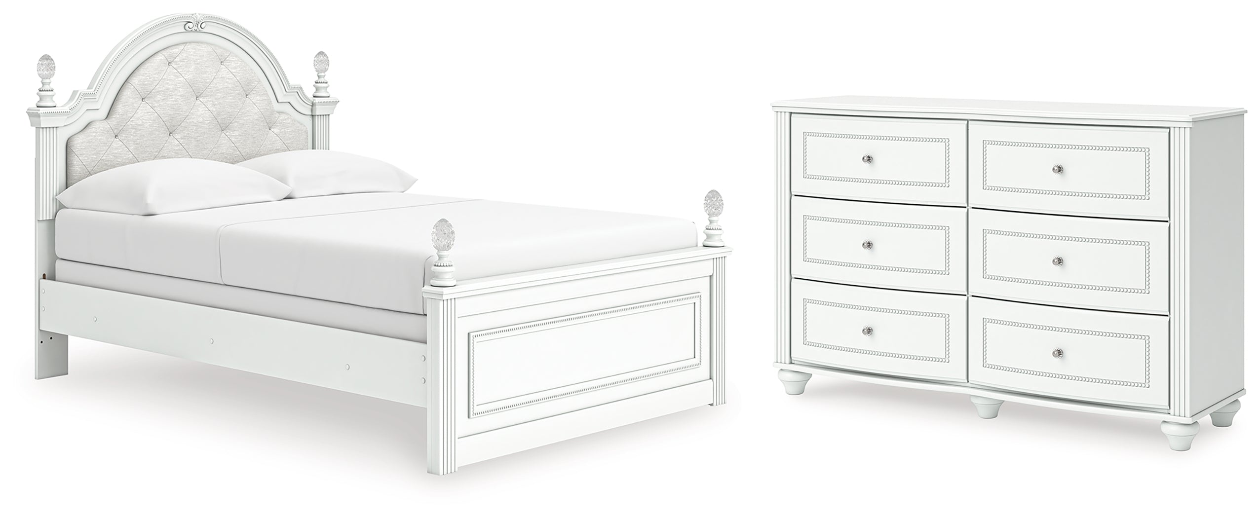 Kozlani Full Upholstered Panel Bed with Dresser in White