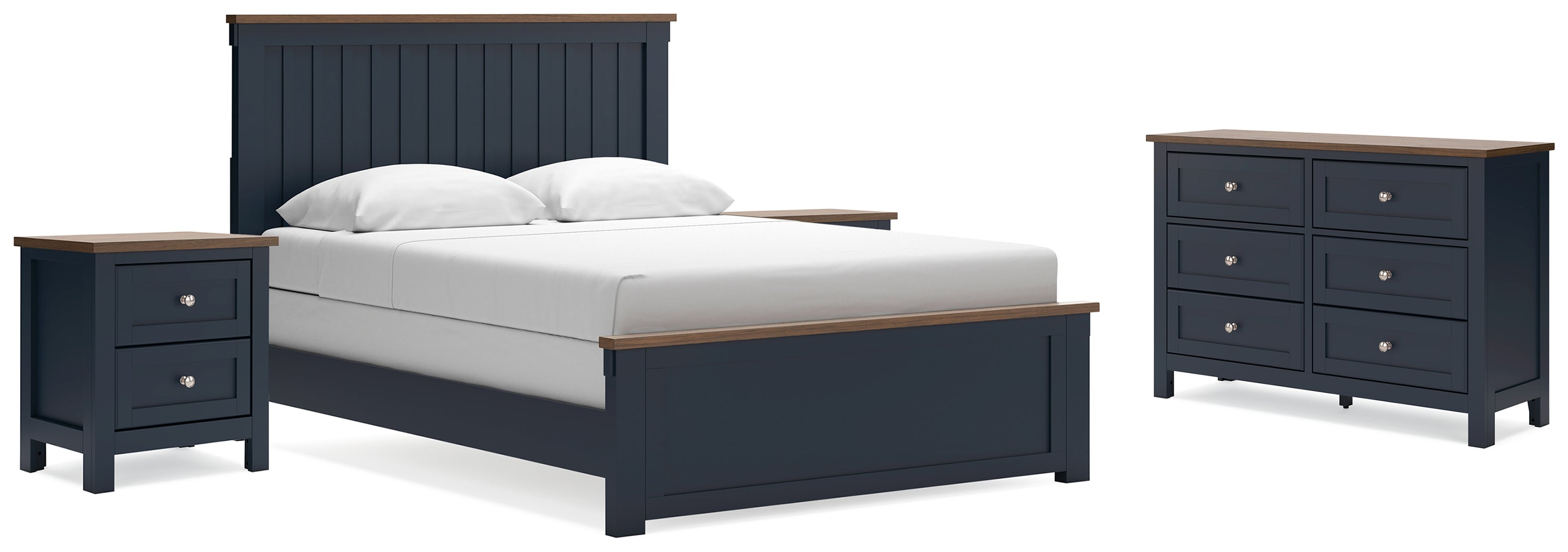 Landocken Queen Panel Bed with Dresser and 2 Nightstands in Brown/Blue