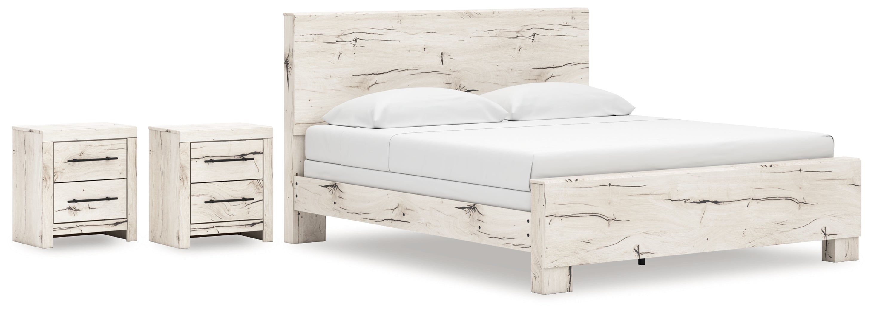 Lawroy King Panel Bed with 2 Nightstands in Light Natural