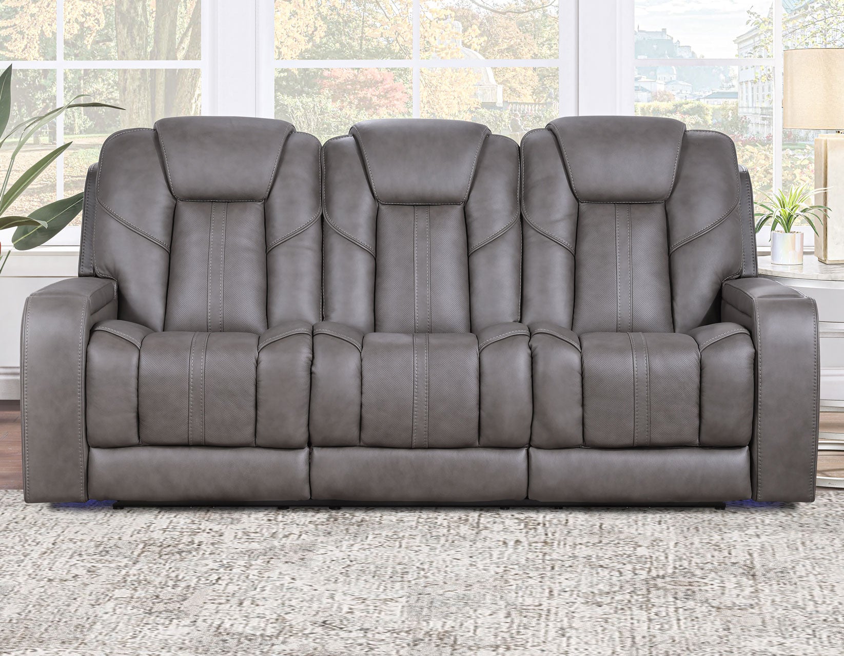 Experience the theater from the comfort of home with the Daniel Triple-Power Leather Reclining Sofa. Wrapped in plush, mossy-gray leather, this sofa is designed for immersive entertainment. Built-in speakers, a subwoofer, and vibration transponders surround you with lifelike sound, while air massage and soothing heat settings add next-level relaxation. A convenient drop-down console offers wireless charging, integrated lighting, and easy-access controls, keeping everything within reach. Enjoy the ultimate blend of luxury, comfort, and high-tech entertainment with the Daniel Triple-Power Leather Reclining Sofa.