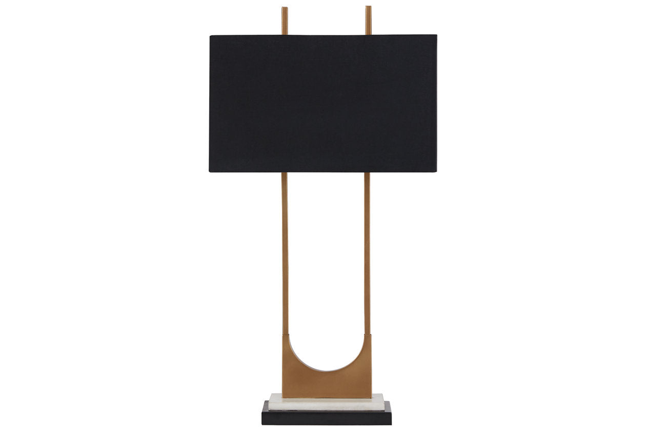 The open metal brass-tone frame adds elegant style to the look of this table lamp. It features a black rectangle shade, brass and black metal finish, white marble base and a 3-way switch. It is built with sheer perfection and adds a dazzling glow to your spaces. — Luna Furniture introduces Malana Table Lamp to enhance the beauty of your living spaces.